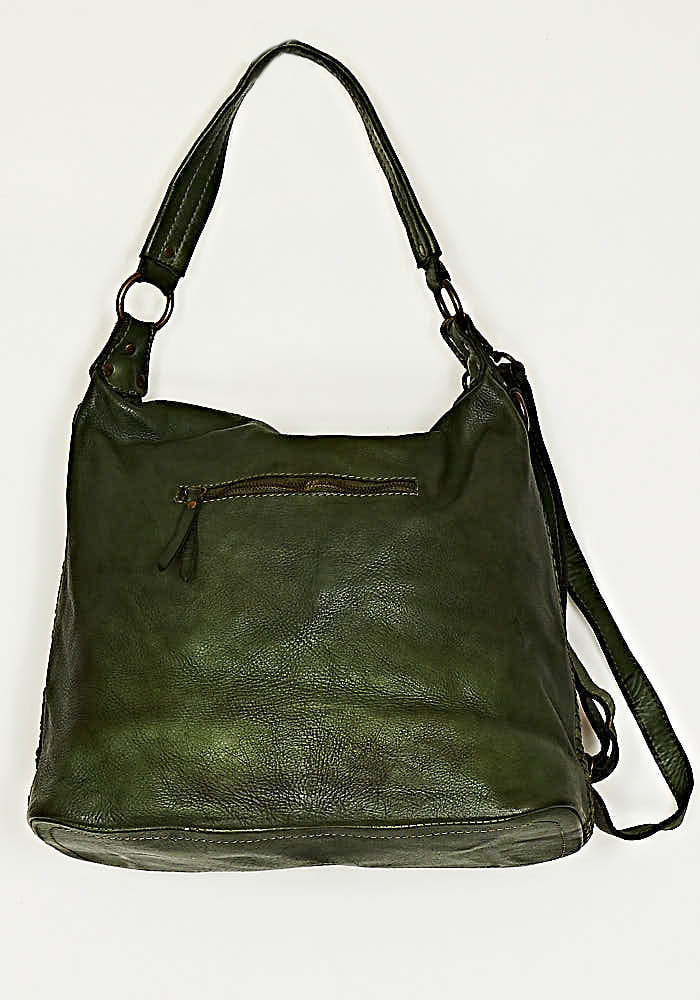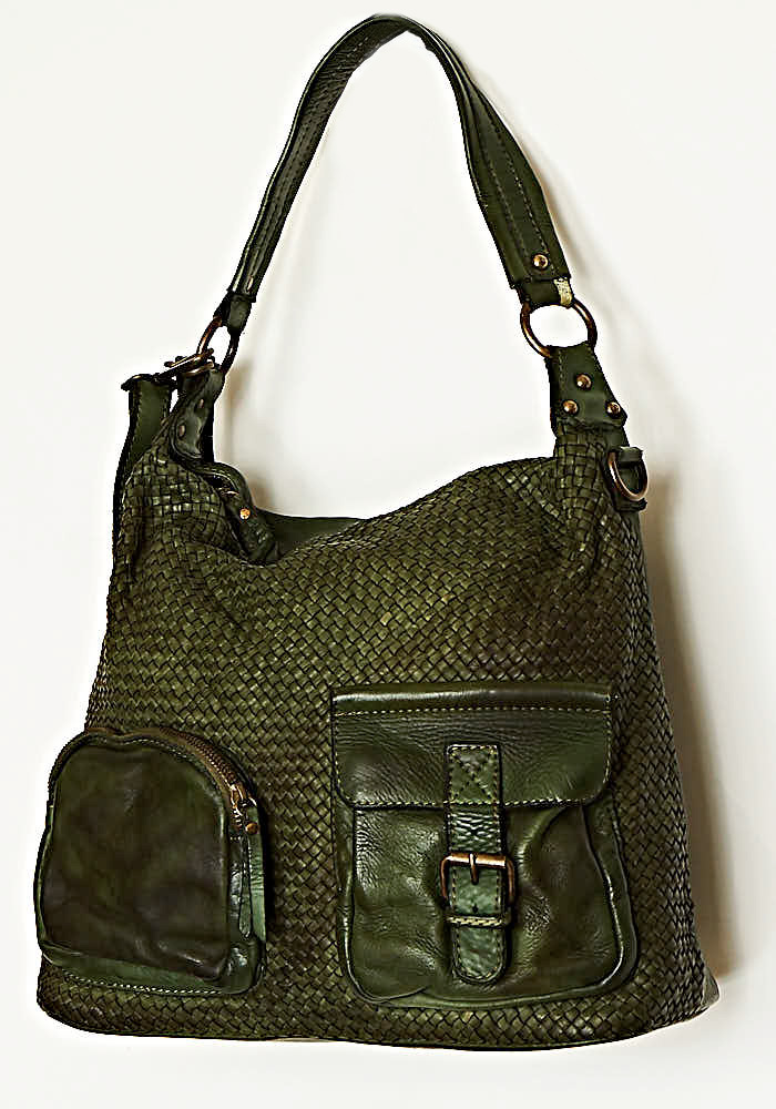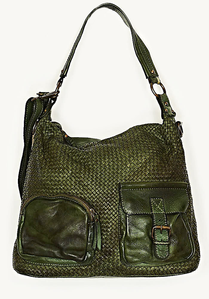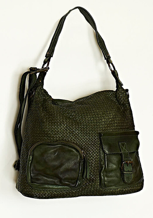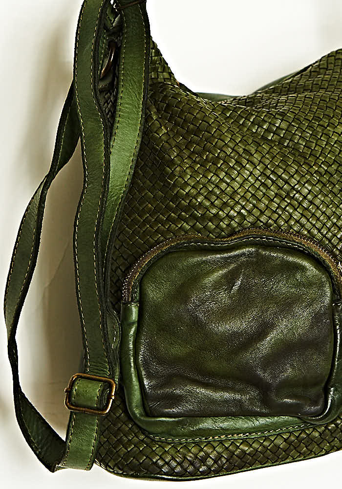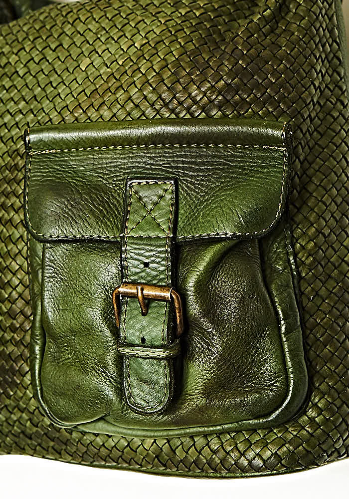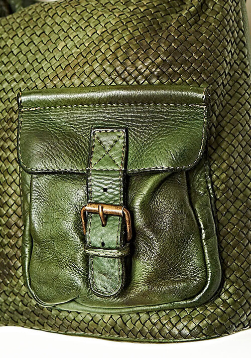 Τσάντα Πλεκτή Χειροποίητη Vintage Από Πεπαλαιωμένο Δέρμα Λαδί