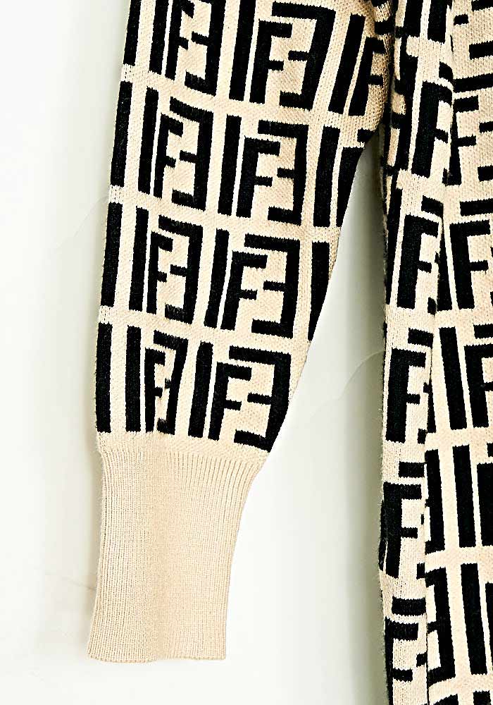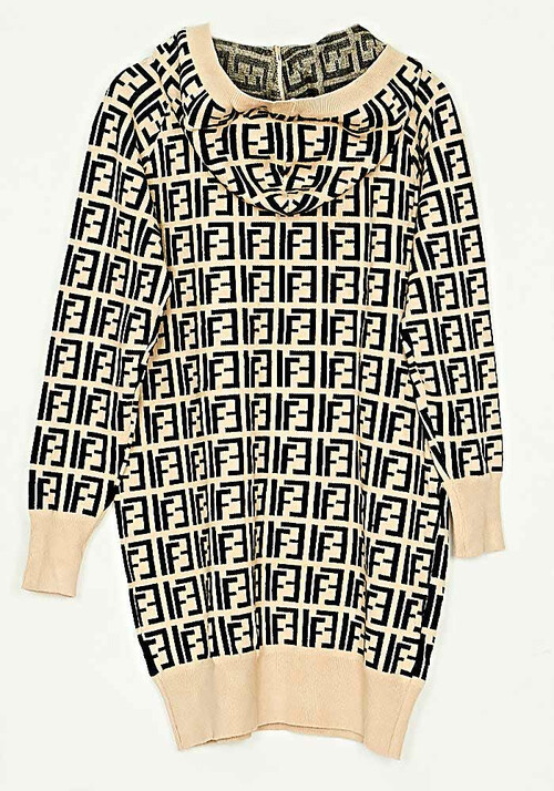 • Φόρεμα/Μπλούζα Hoodie Πλεκτό Loose Fit Mπεζ/Μάυρο
