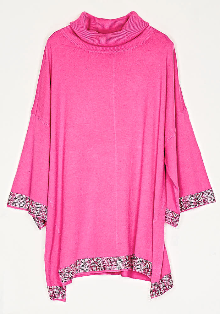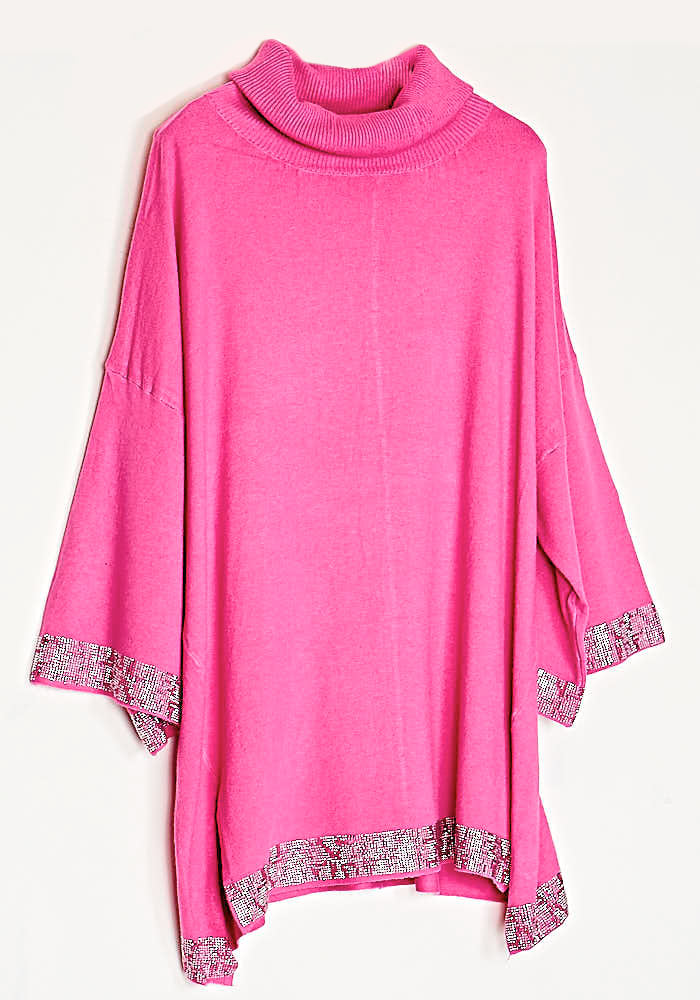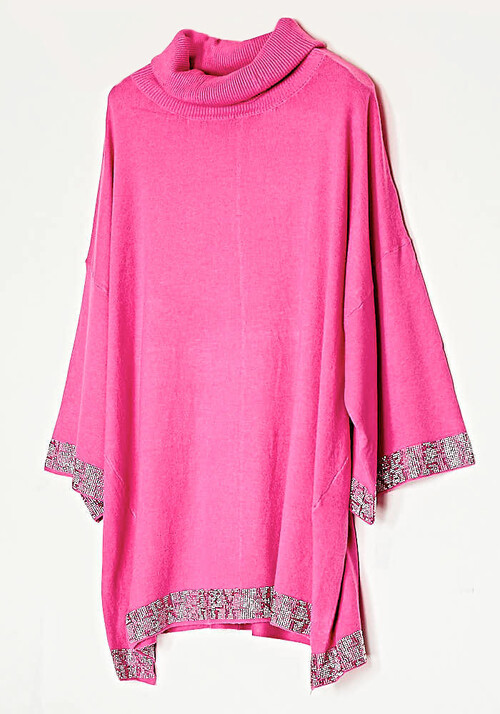 Μπλούζα / Φόρεμα Oversized Mε Strass Φούξια