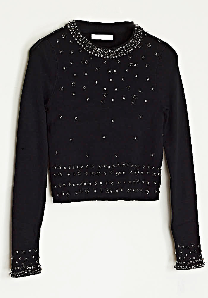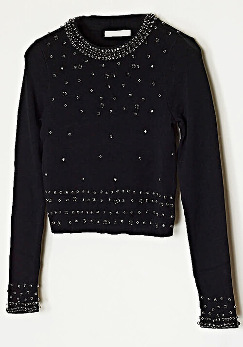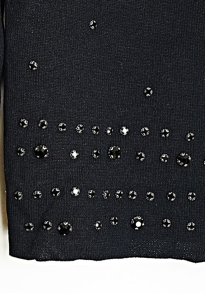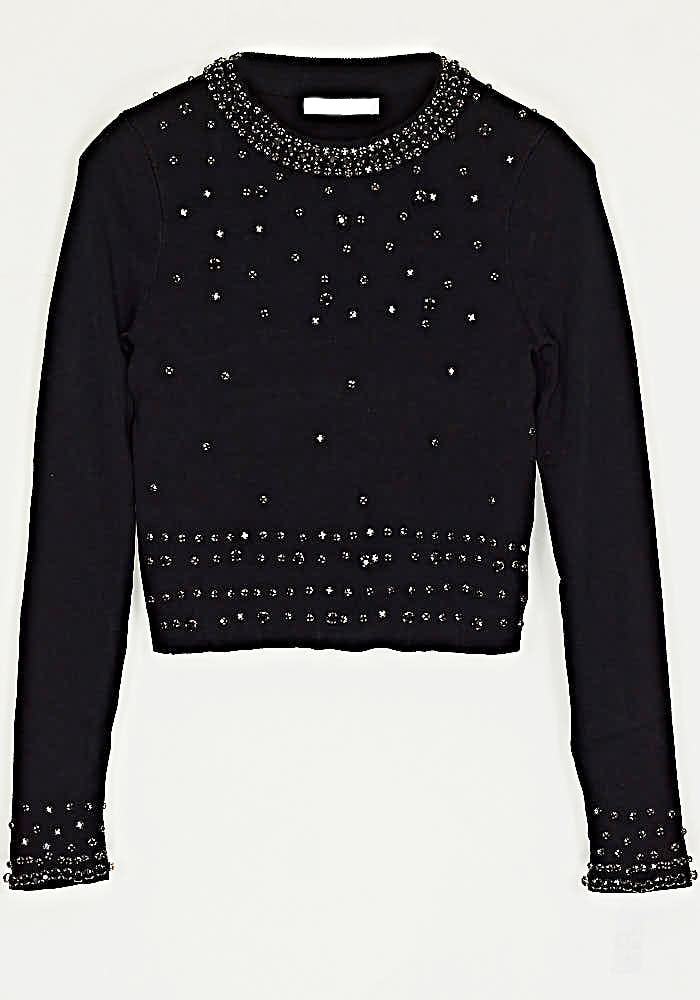 • Μπλούζα Κοντή Στολισμένη Με Μάυρες Πέτρες Μάυρη