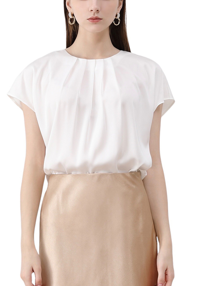 • Μπλούζα Light Satin Με Πιέτες Στην Λαιμόκοψη Λευκό