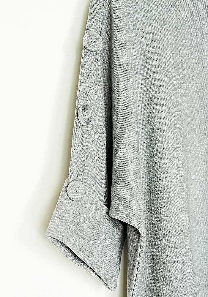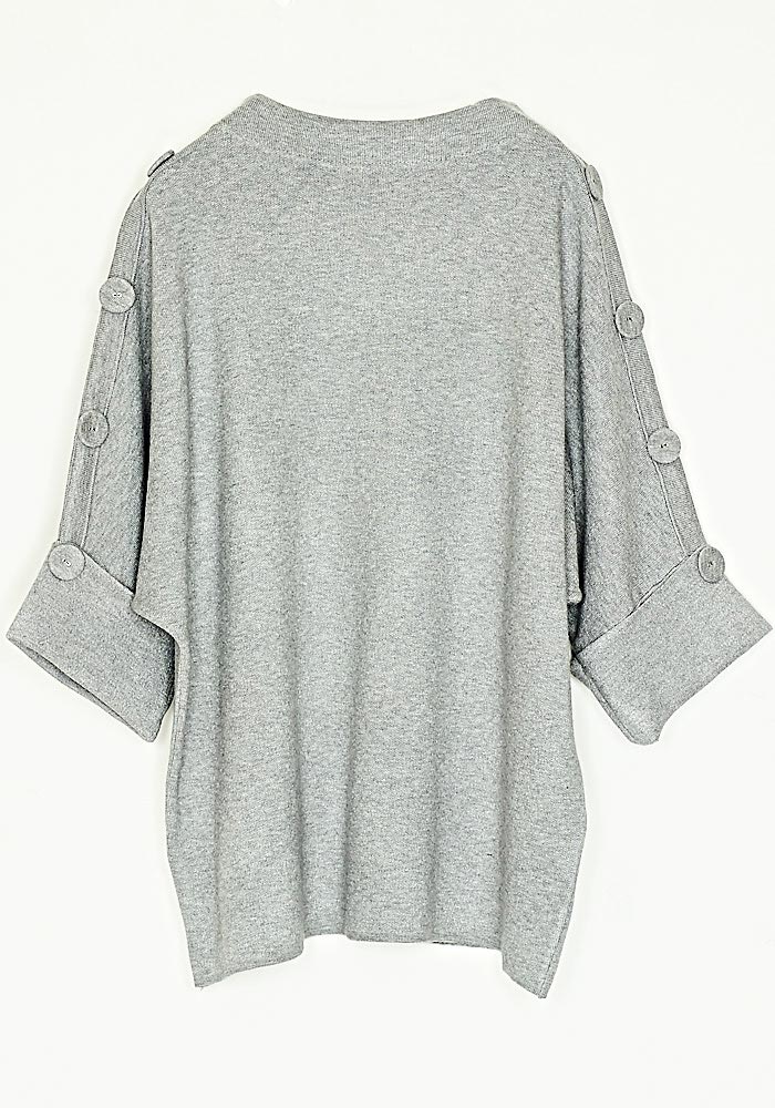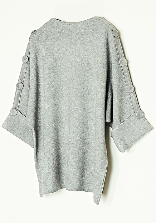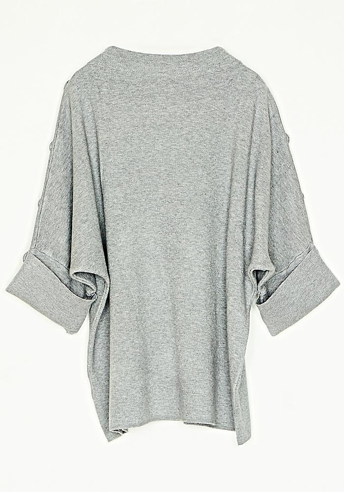 Μπλούζα Loose Fit Πλεκτή Μίξη Μαλί Melange Μανίκια 3/4 Γκρι