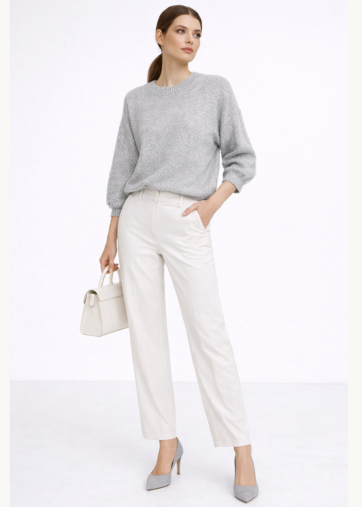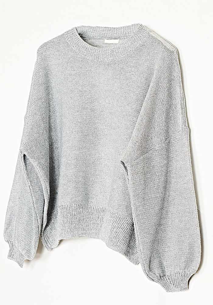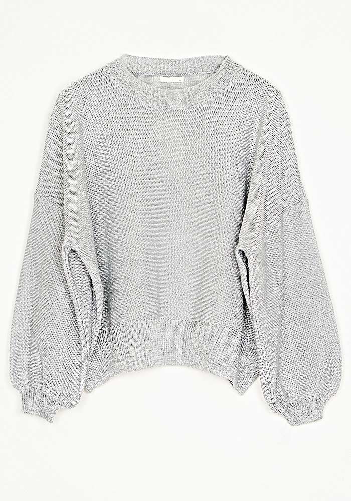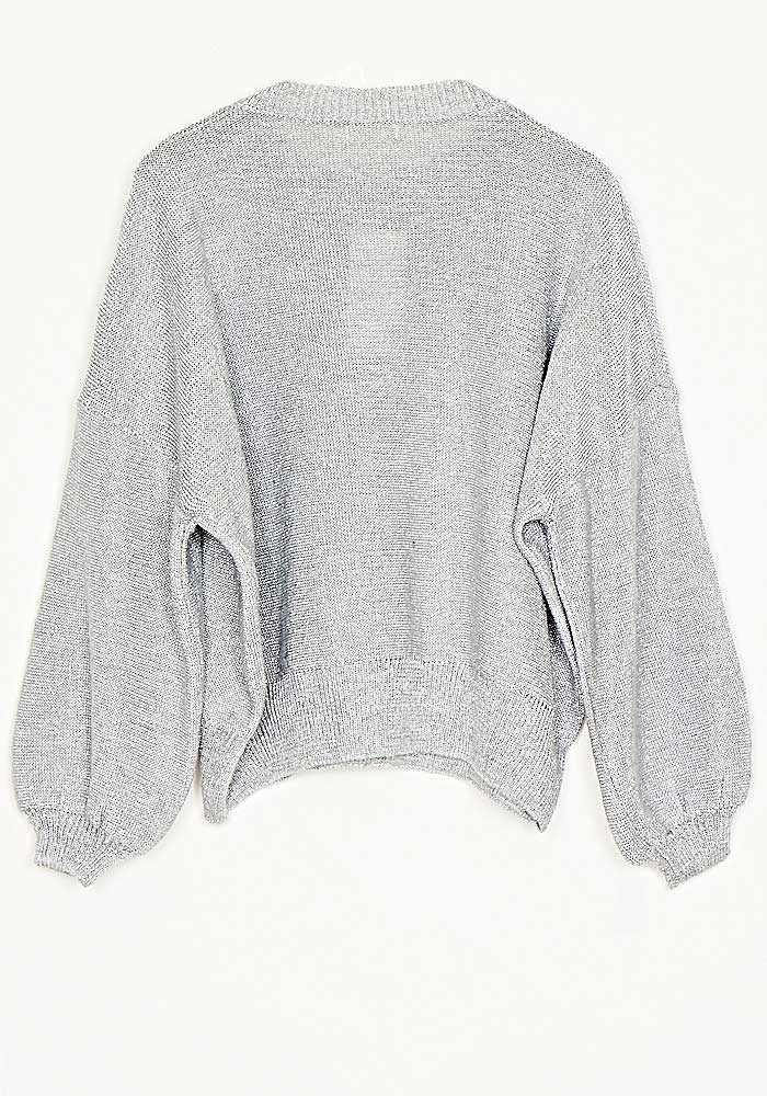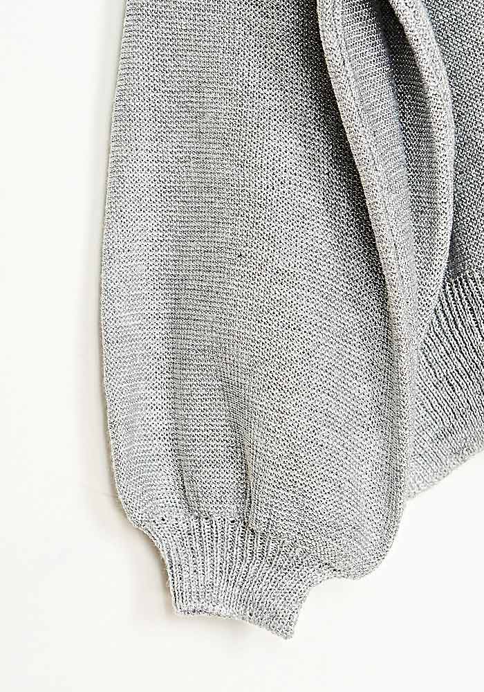 Mπλουζα Πλεκτή Lurex Με Πομπέ Μανίκια Ασημί