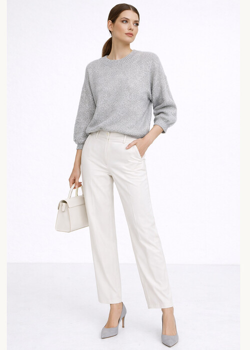 • Mπλουζα Πλεκτή Lurex Με Πομπέ Μανίκια Ασημί