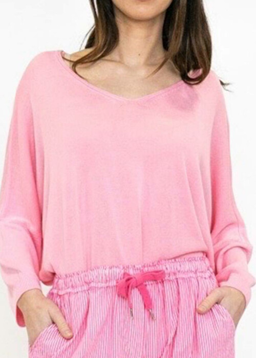 Μπλούζα Πλεκτή Μερσεριζέ Loose Fit Ροζ