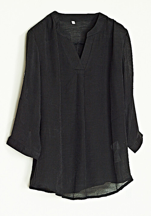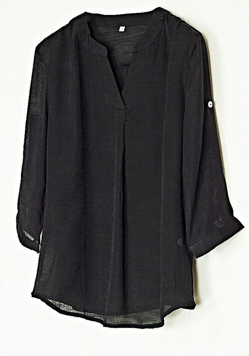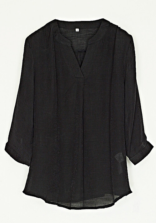 • Πουκαμίσα Γάζα Loose Fit Mε Κουφόπιετα Μάυρο