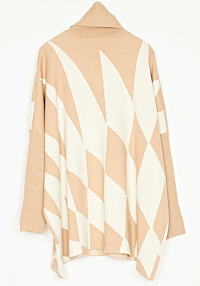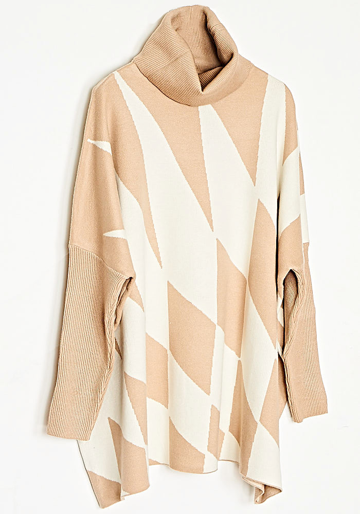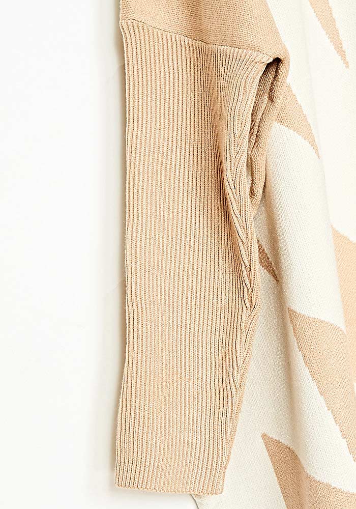 • Pullover / Φόρεμα Oversized Μαλί και Βαμβάκι Γεωμετρικά Καμηλό
