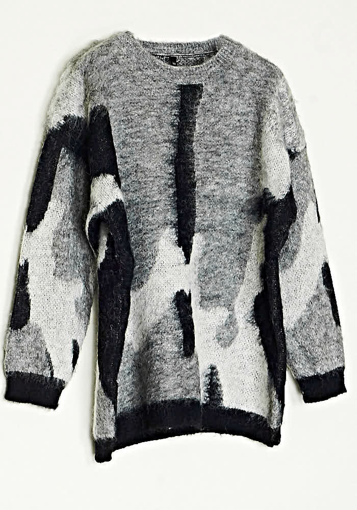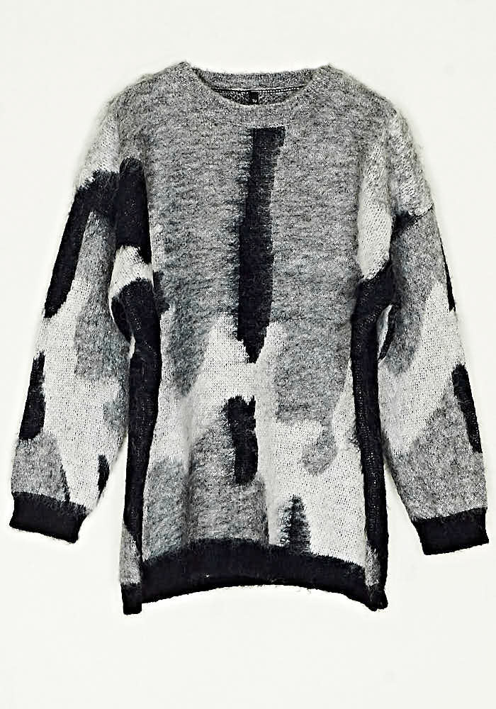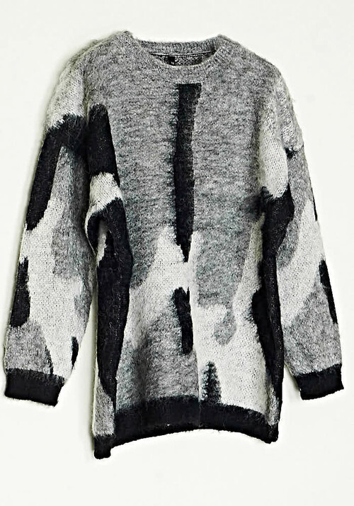 Pullover Μακρύ Loose Fit Μιξ Μαλί Γκρί