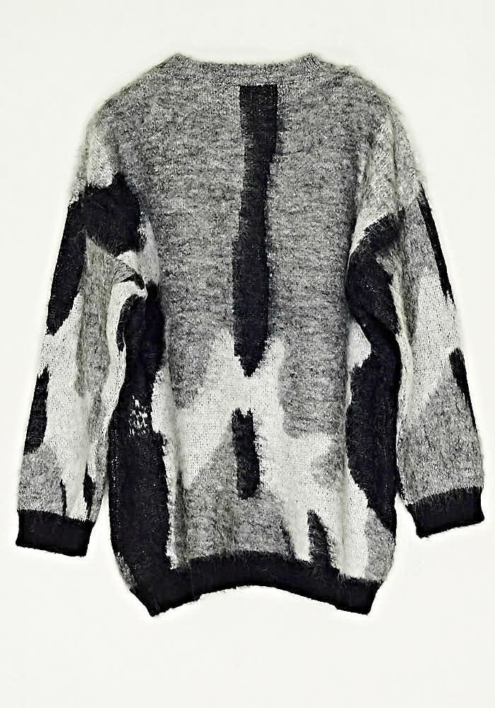 • Pullover Μακρύ  Loose Fit Μιξ Μαλί Γκρί