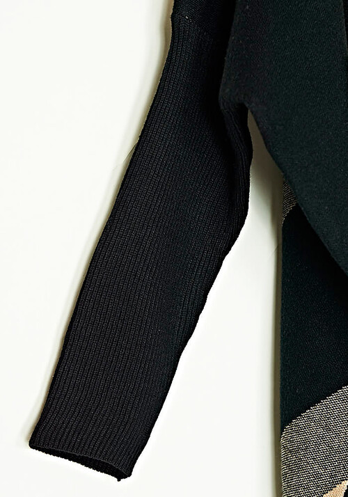 • Pullover Oversized Μαλί Mιίξη Γραμμικό Σχέδιο Μάυρο/Μπεζ