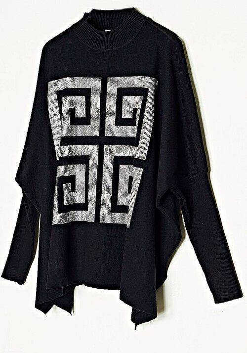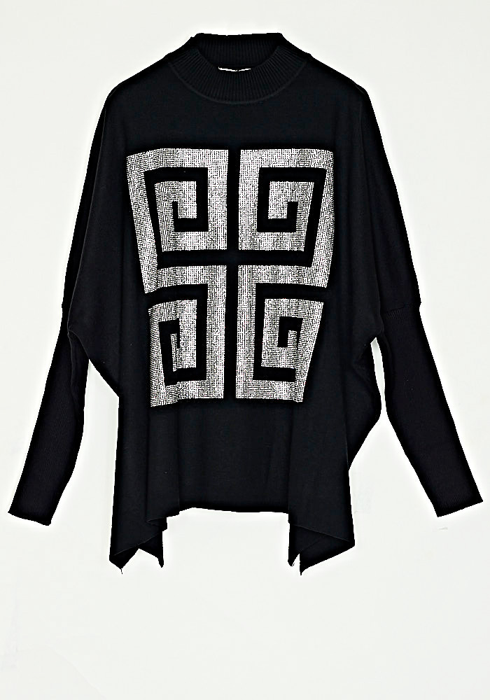 Pullover Oversized Με Strass Mάυρο/Ασημί
