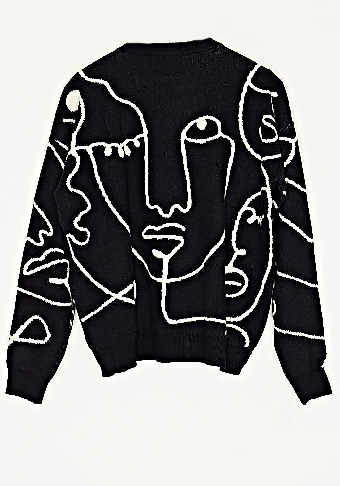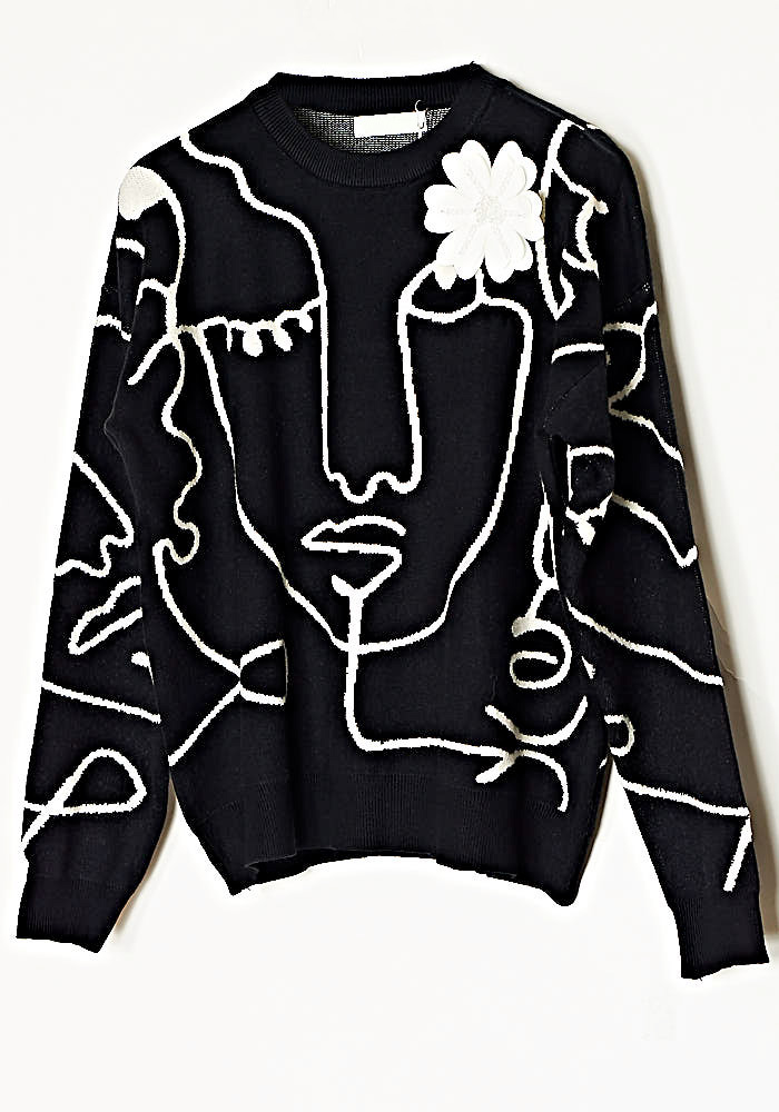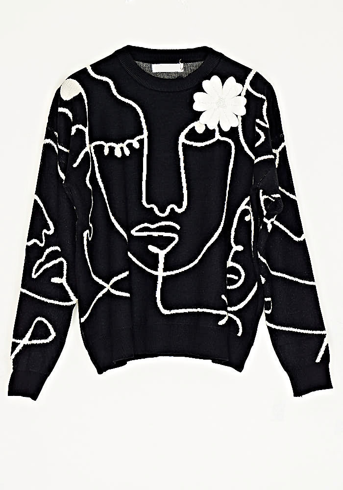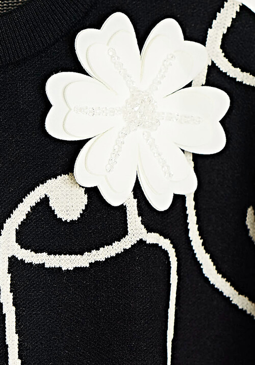 • Pullover Πλεκτό Loose Με Μπουτονιέρα Άσπρο/Μάυρο