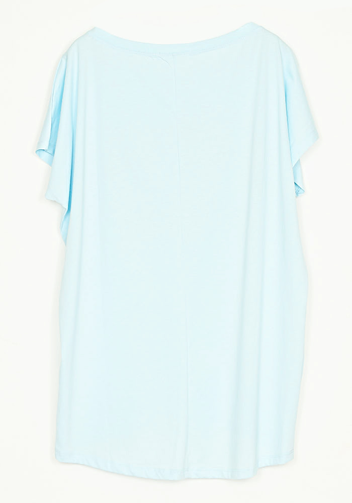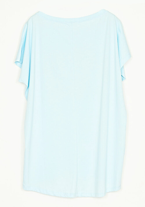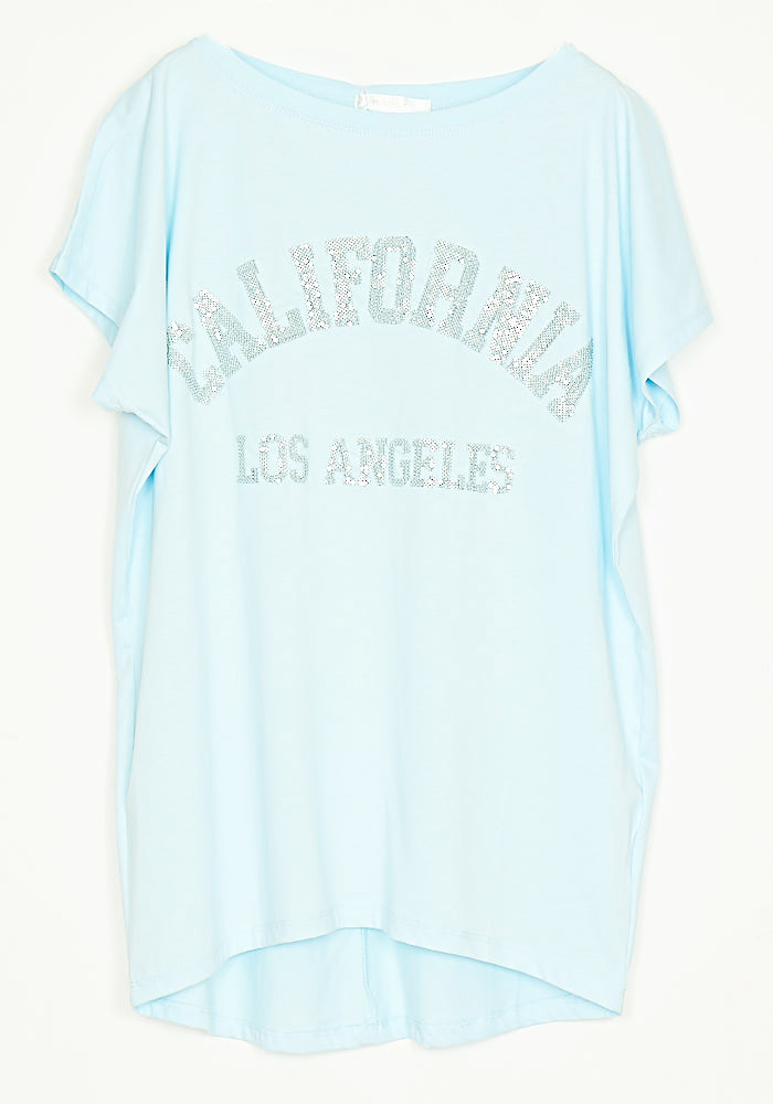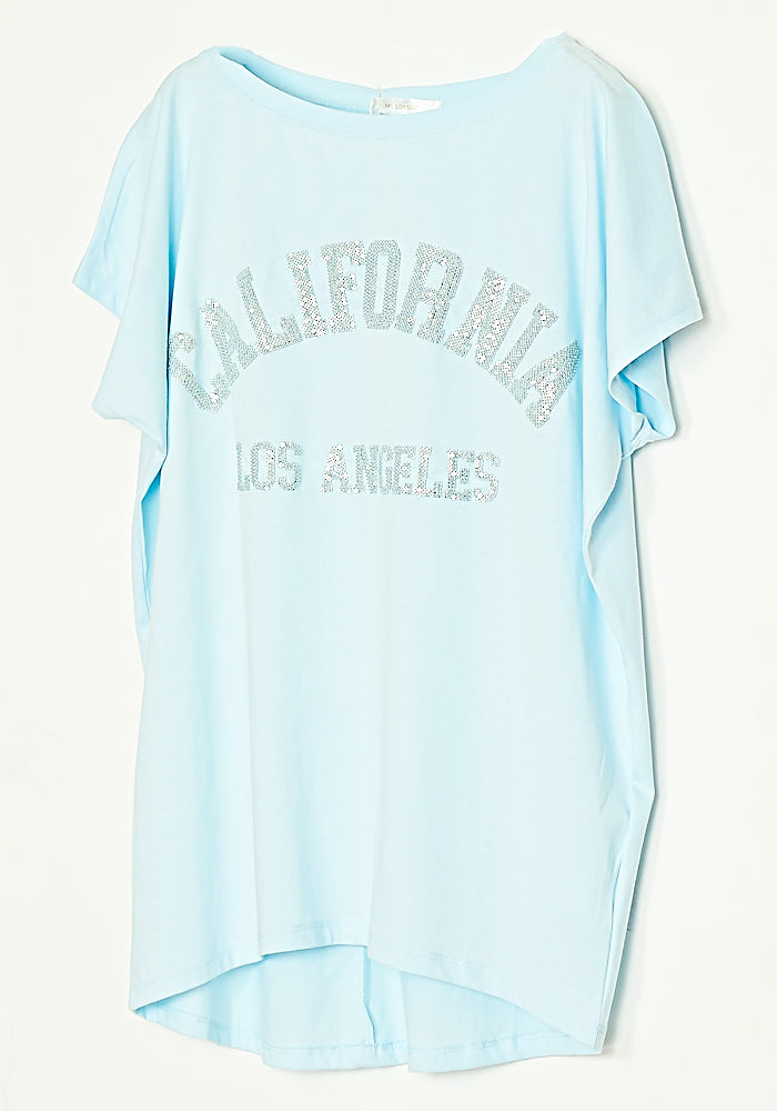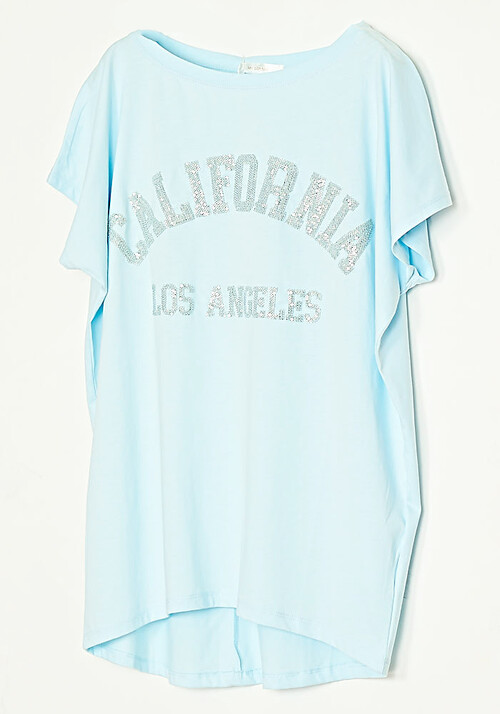 T - Shirt Βαμβακερό Oversized Mε Απλικέ Παγέτες Γαλάζιο