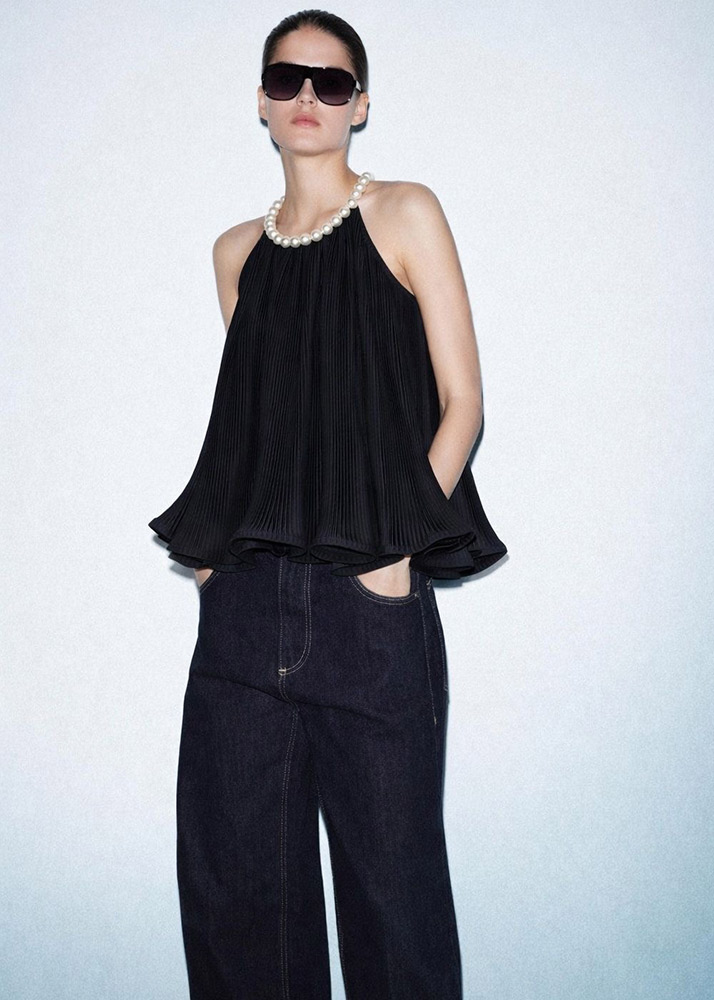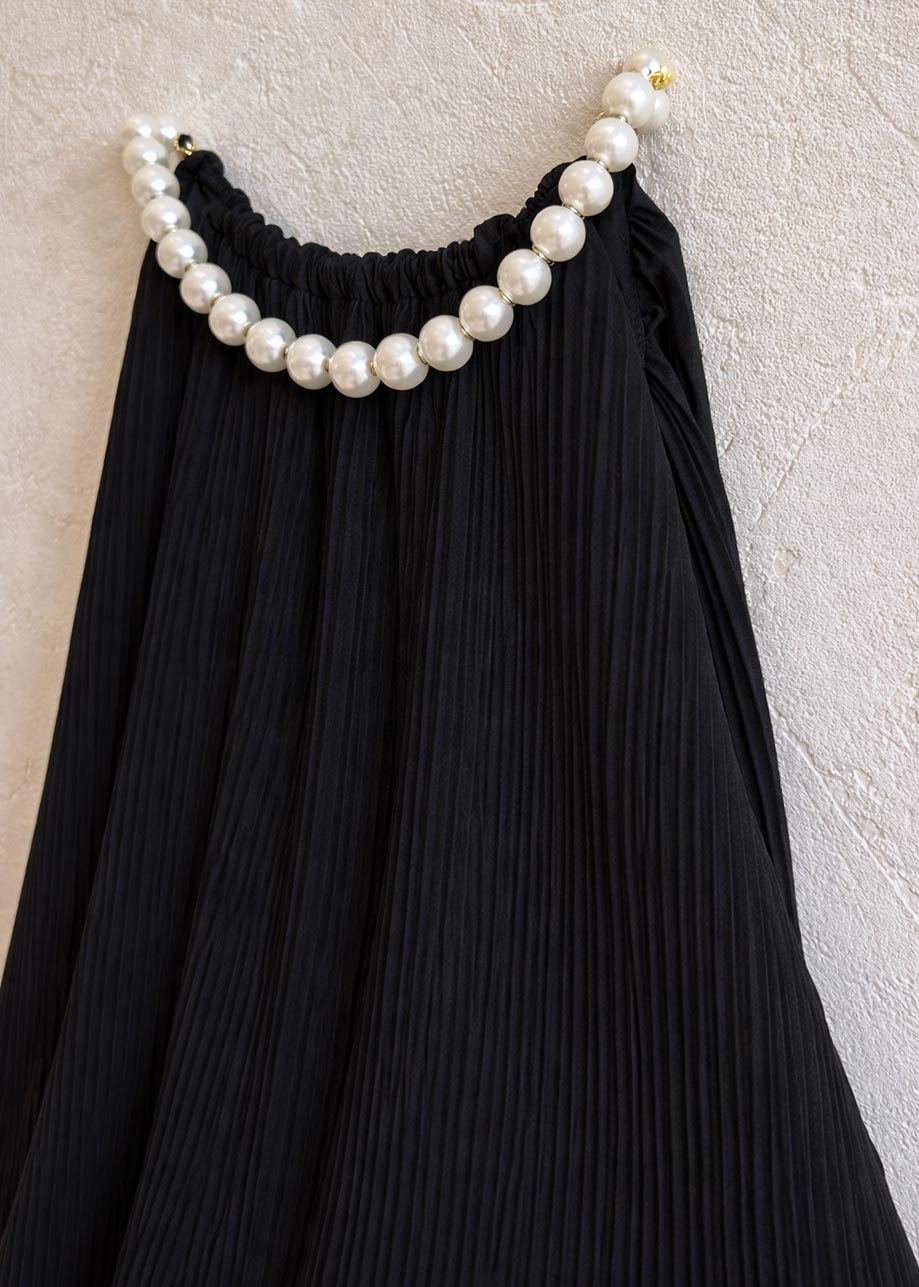 • Top Πλισσέ Με Πέρλες Μάυρο