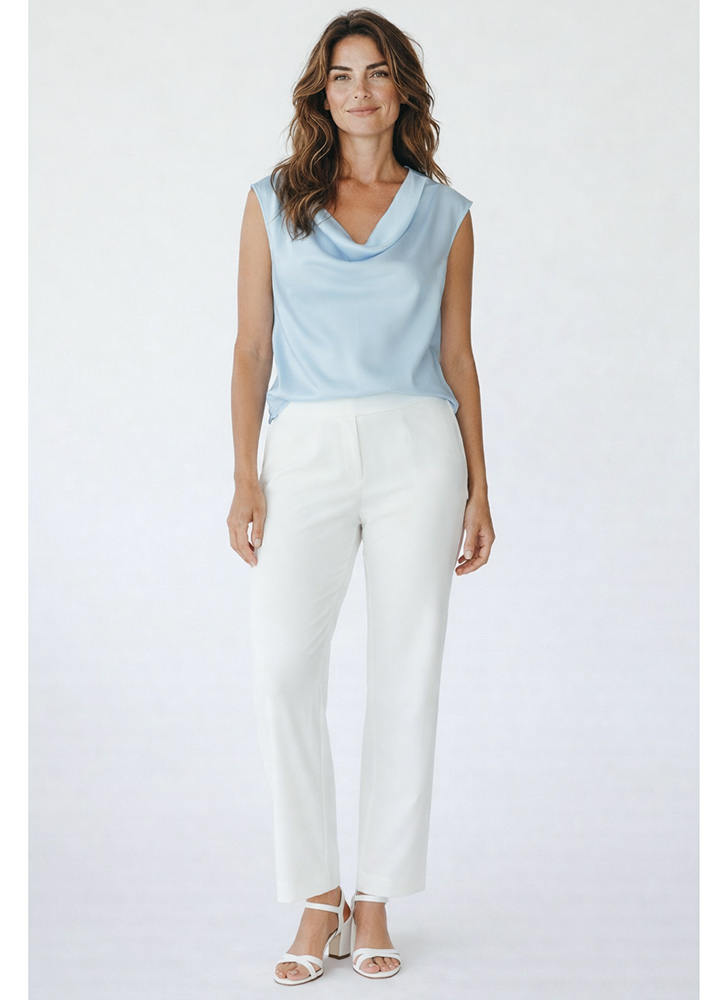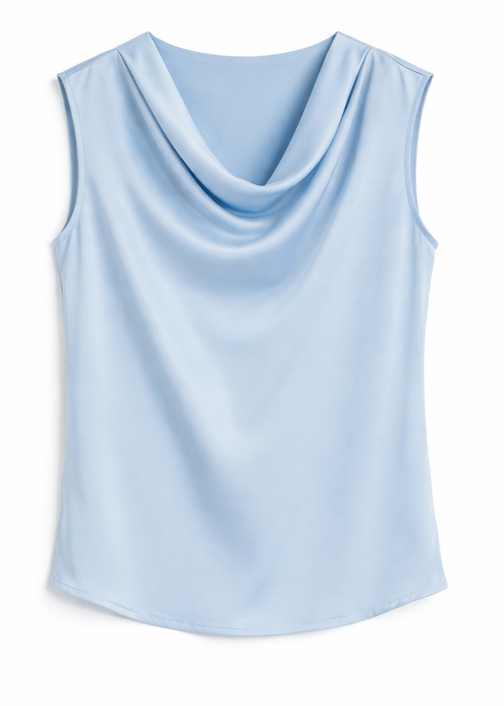 • Τοπ Satin Αμάνικο Με Ντραπέ Στην Λαιμόκοψη Τυρκουάζ