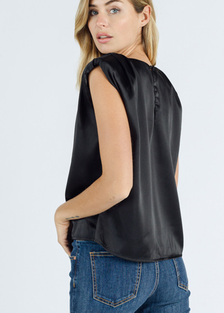 • Toπ Satin Boxy Αμάνικο  Mε Βάτες  Mάυρο