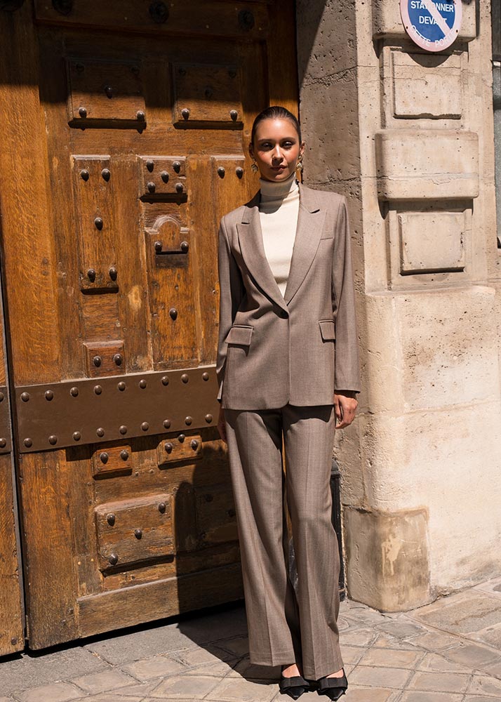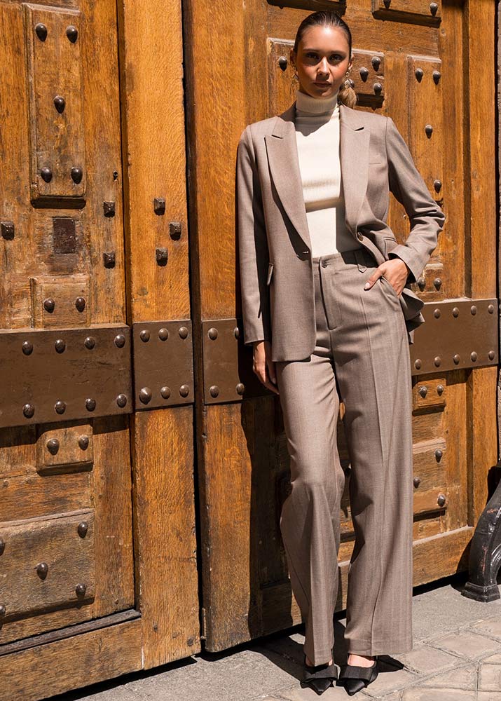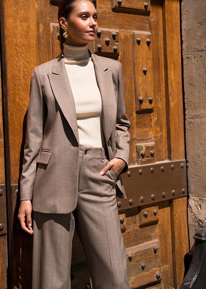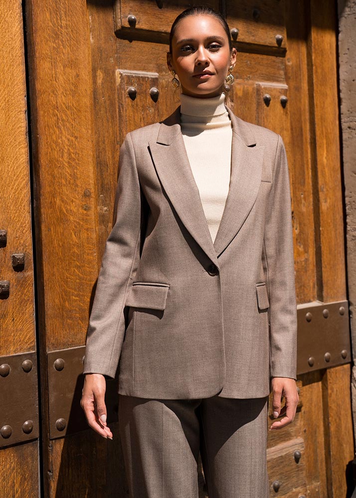 Σακκάκι Μονόκουμπο Loose Fit Ψαροκόκκαλο Μπεζ/Καφέ