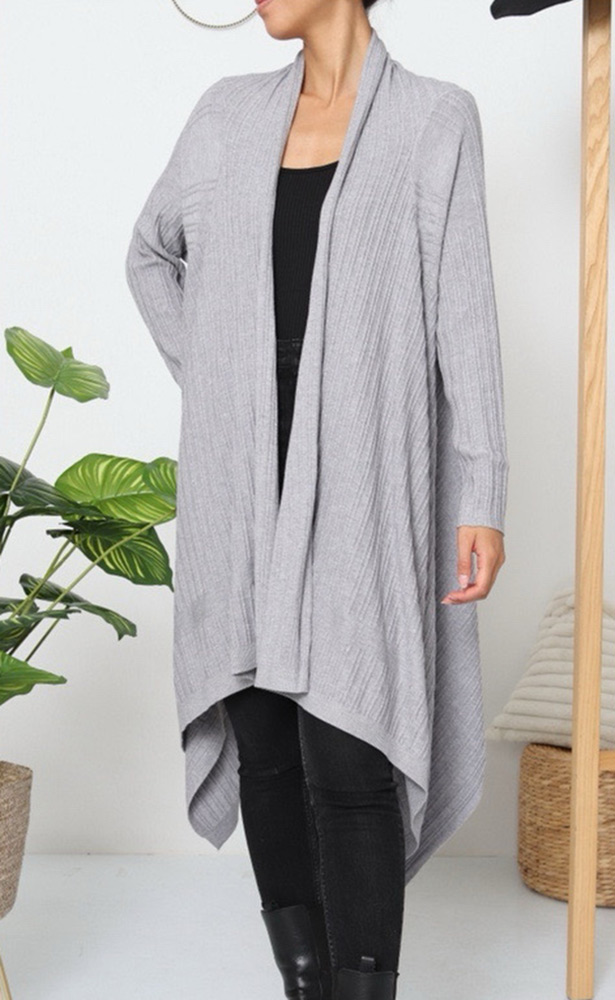 Ζακέτα Μακριά Ασύμμετρη Ριπ Πλεκτή Γκρι