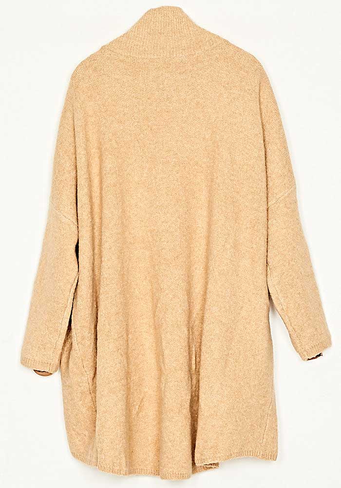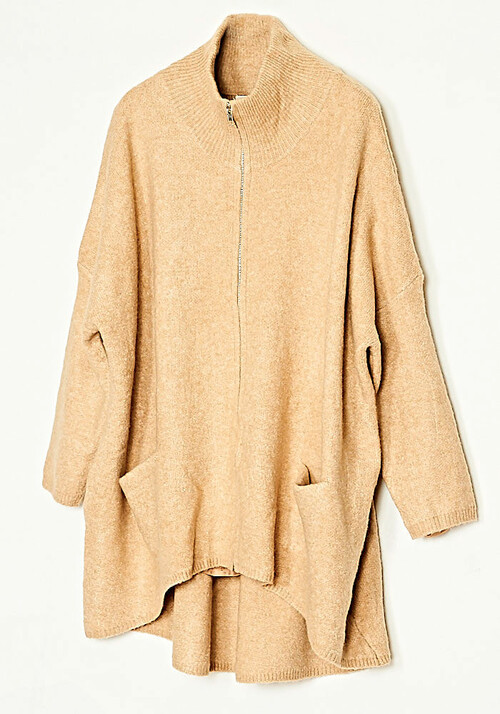 Ζακέτα Mελανζέ Οversized Πλεκτή Με Φερμουάρ Μπεζ