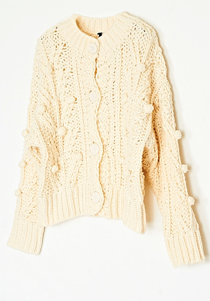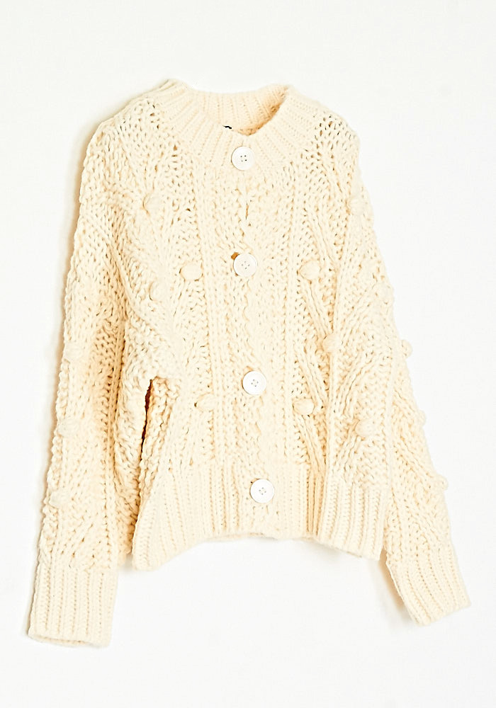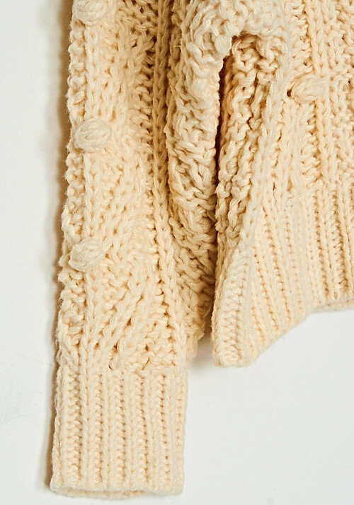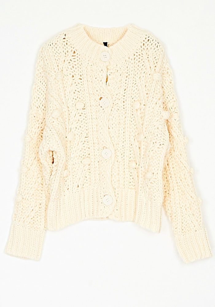 Ζακέτα Πλεκτή Βελονάκι Με Μεγάλα Κουμπιά Κρέμ