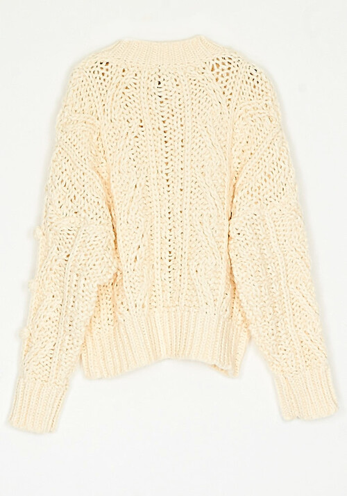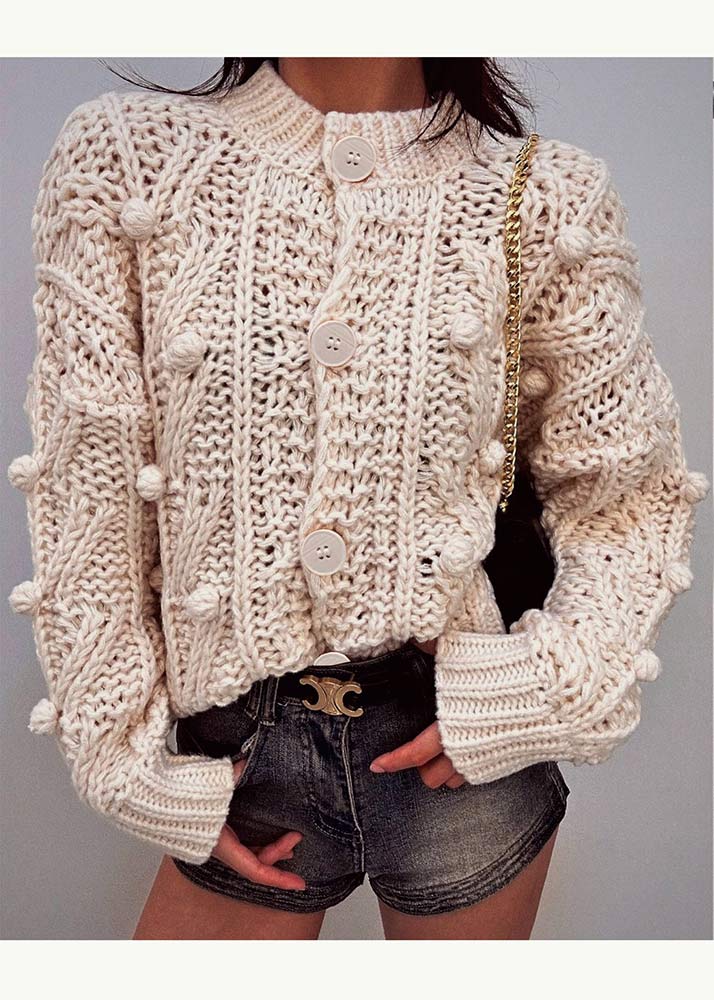 • Ζακέτα Πλεκτή Βελονάκι Με Μεγάλα Κουμπιά Κρέμ