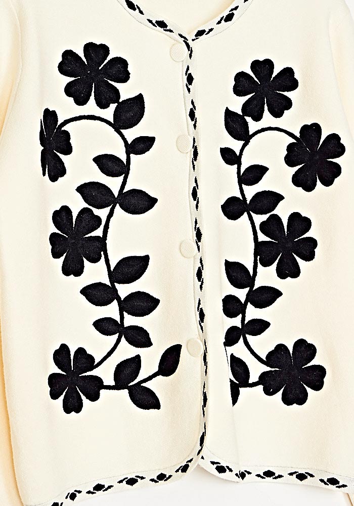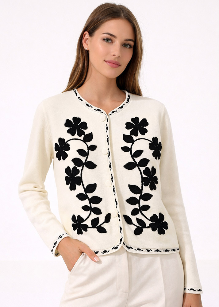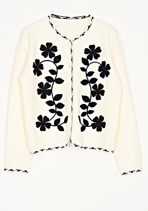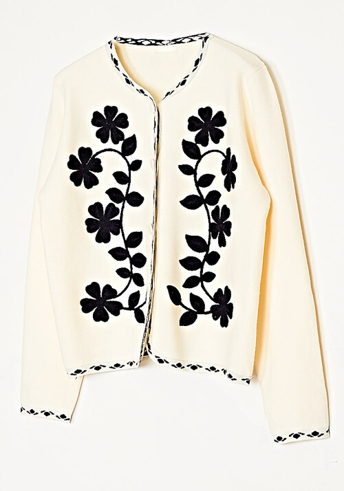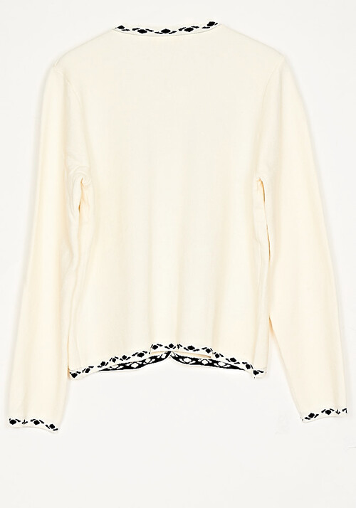 Ζακέτα Πλεκτή Με Απλικέ Βελούδο Σχέδιο Ιβουάρ