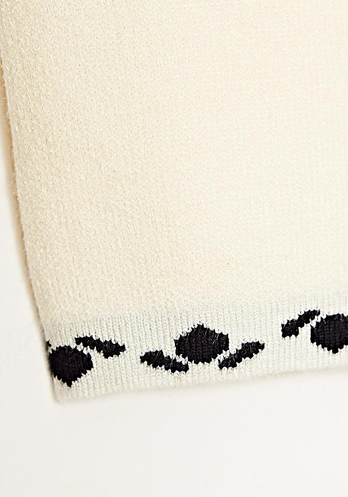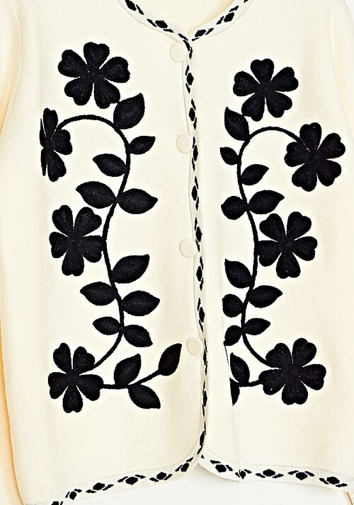 • Ζακέτα Πλεκτή Με Απλικέ Βελούδο Σχέδιο Ιβουάρ