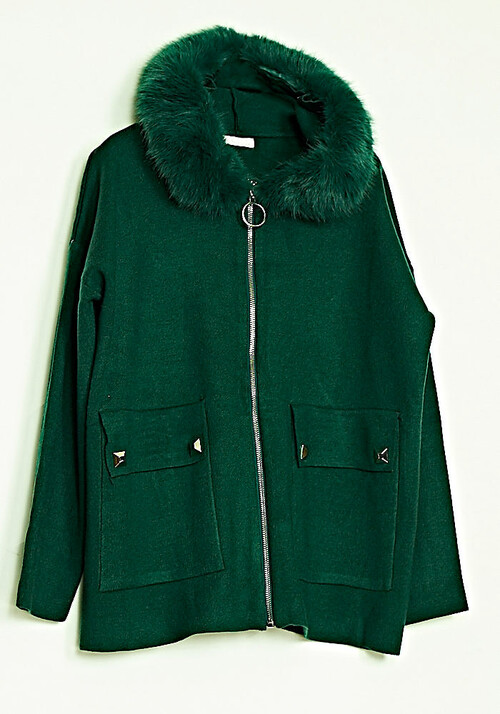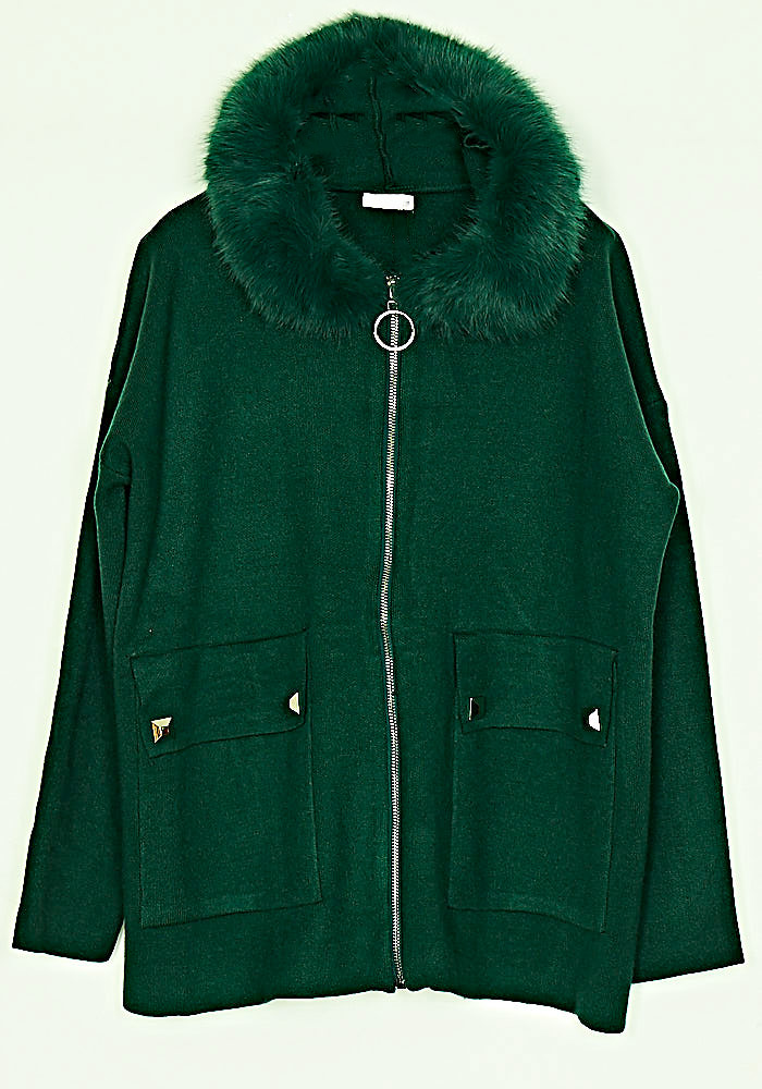 • Ζακέτα Πλεκτή Mε Φερμουάρ & Κουκούλα Πράσινη