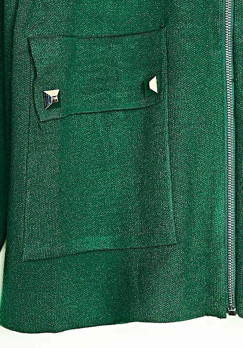 Ζακέτα Πλεκτή Mε Φερμουάρ & Κουκούλα Πράσινη