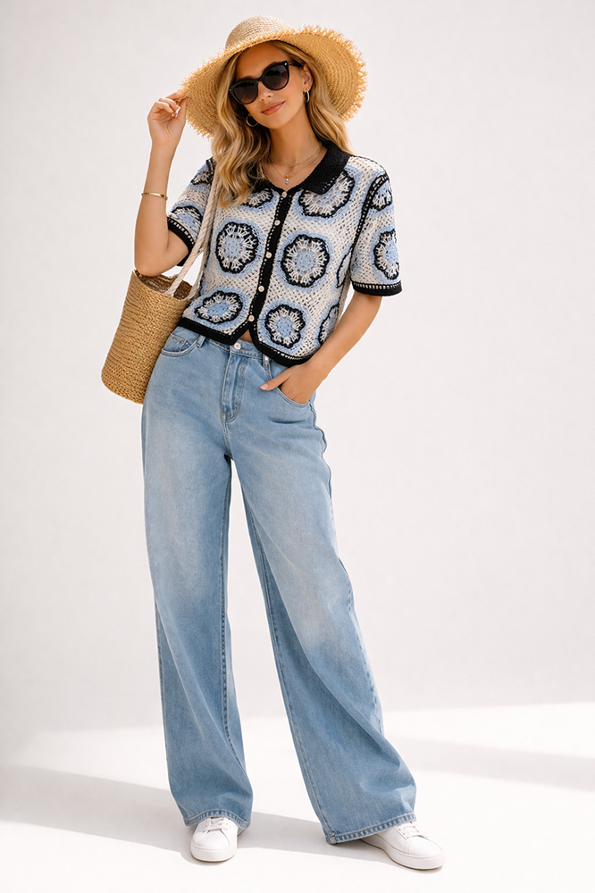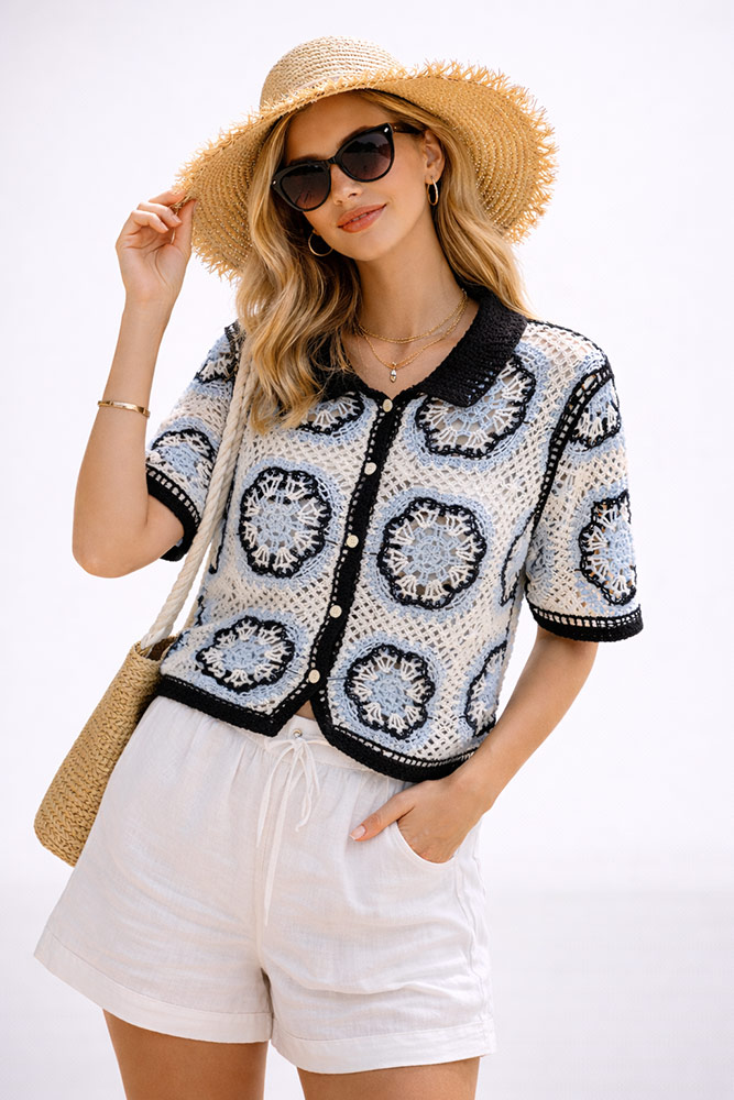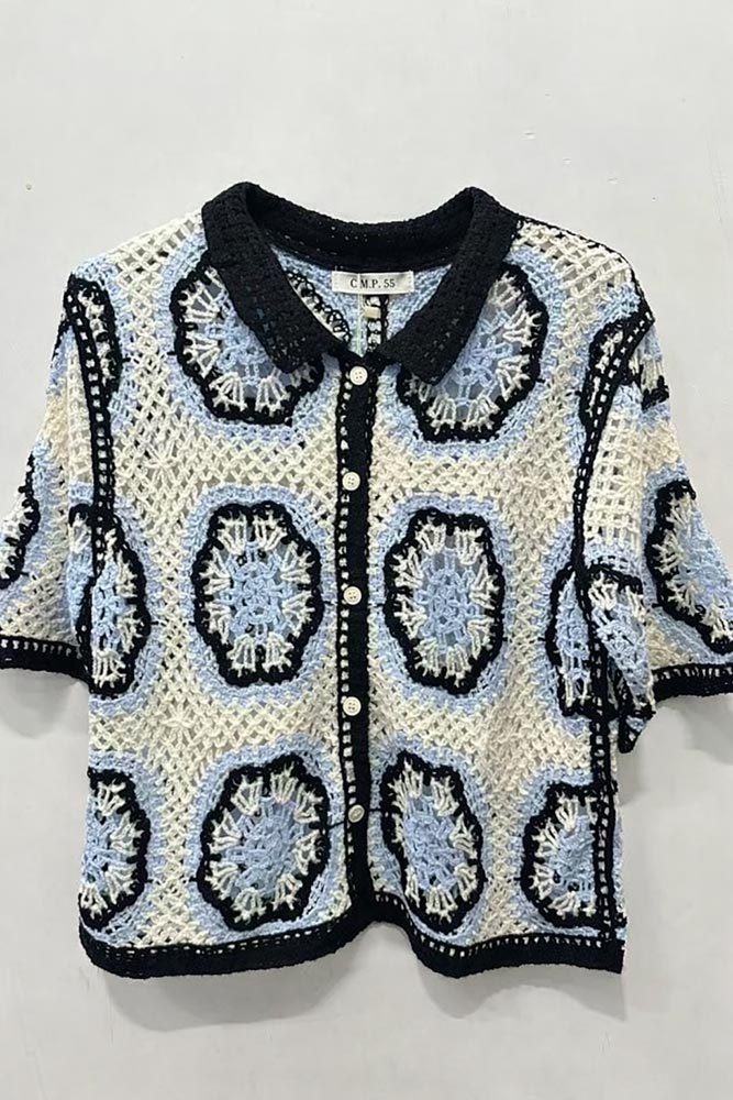 Ζακετάκι Crochet Βελονάκι Κοντόμάνικο Μάυρο/Μπλέ