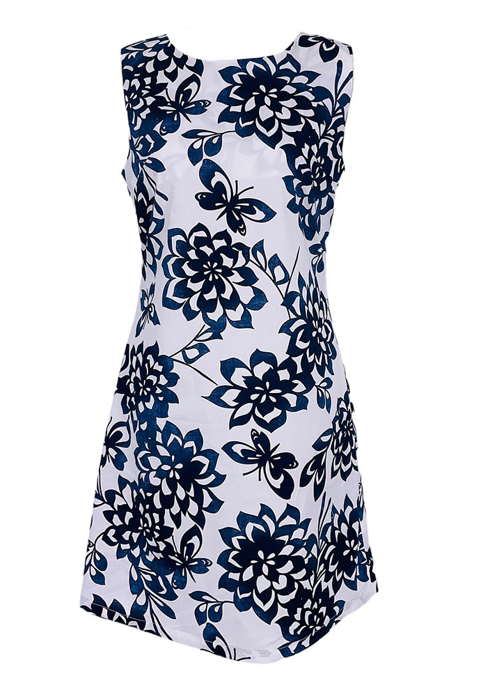 • Φόρεμα Αμάνικο Bάμβακερό Άλφα Γραμμή Εμπριμέ