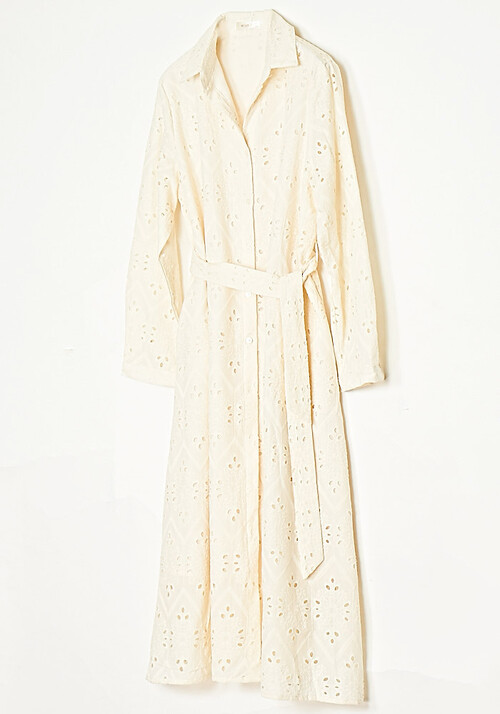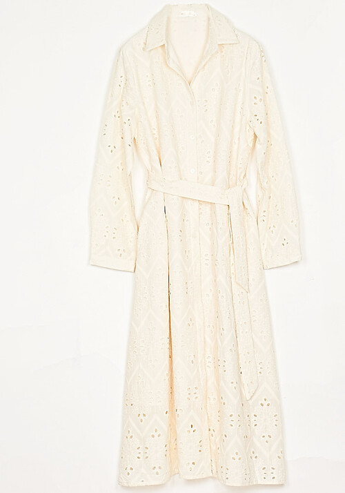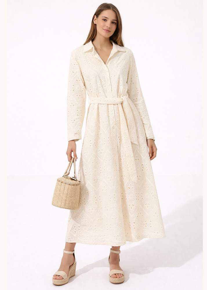 • Φόρεμα Chemizier Maxi Βαμβακερή Broderie Μπεζ