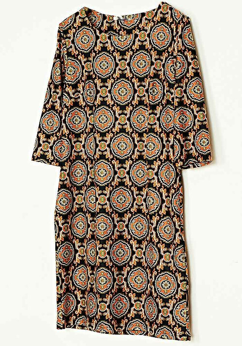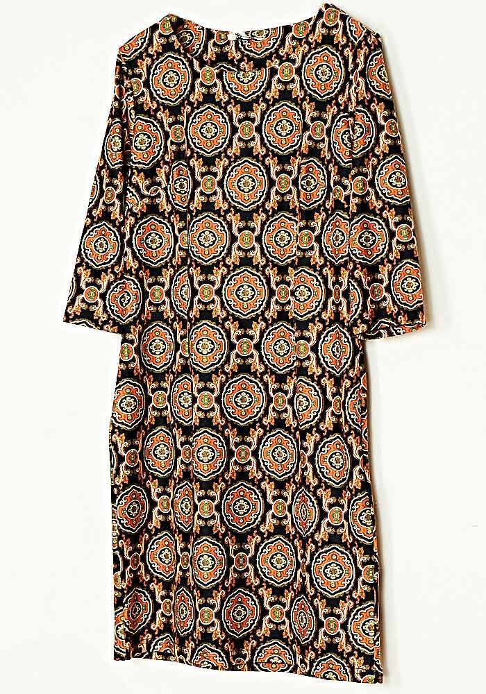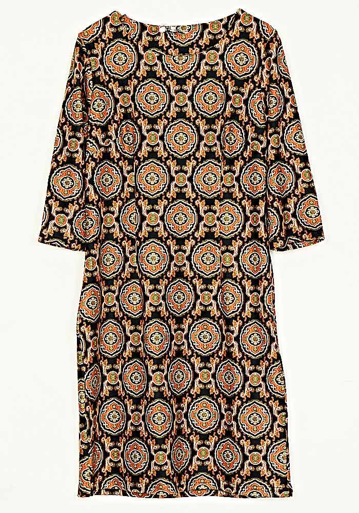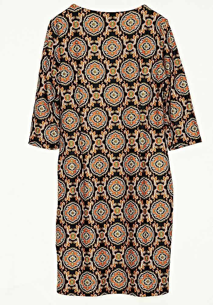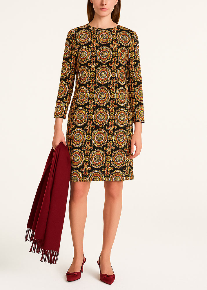 • Φόρεμα Eco Suede Κλασσική Γραμμή Εμπριμέ Μάυρο
