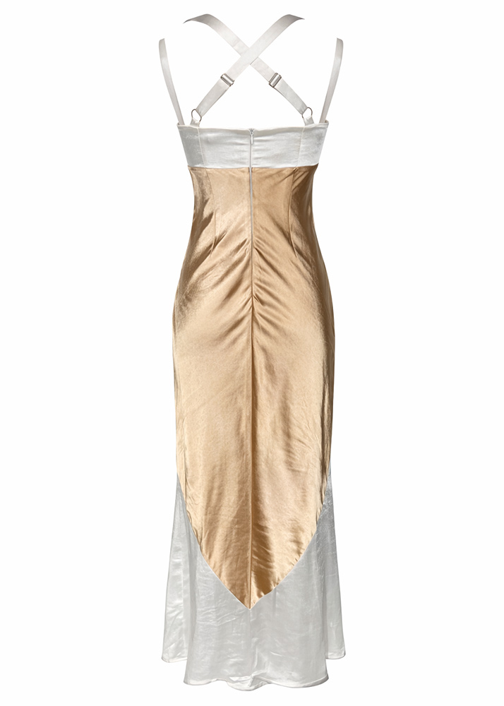 • Φόρεμα Maxi CrepeSatin Mε Ενίσχηση Άσπρο/Χρυσό