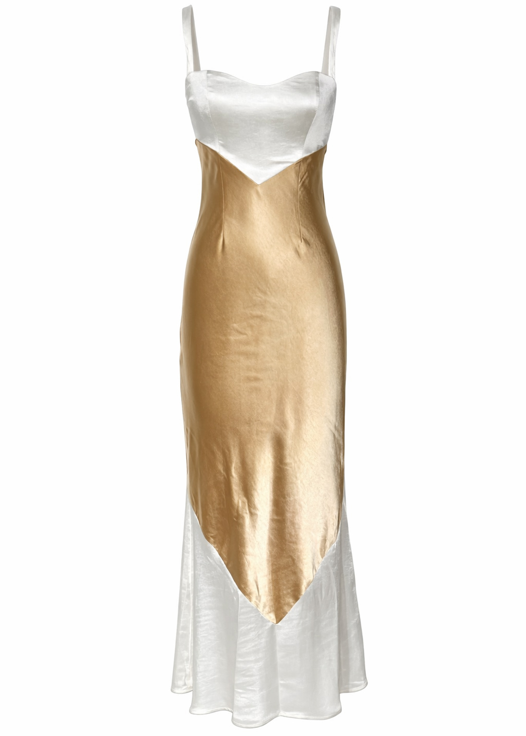 Φόρεμα Maxi CrepeSatin Mε Ενίσχηση Άσπρο/Χρυσό