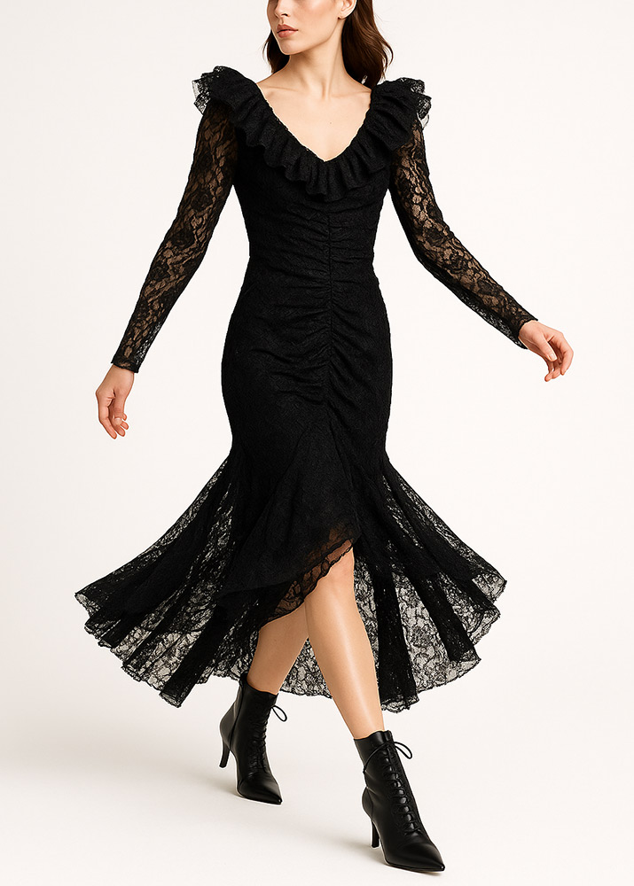 • Φόρεμα Maxi Τούλι/Δαντέλα Βολάν Μάυρο