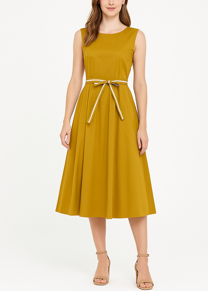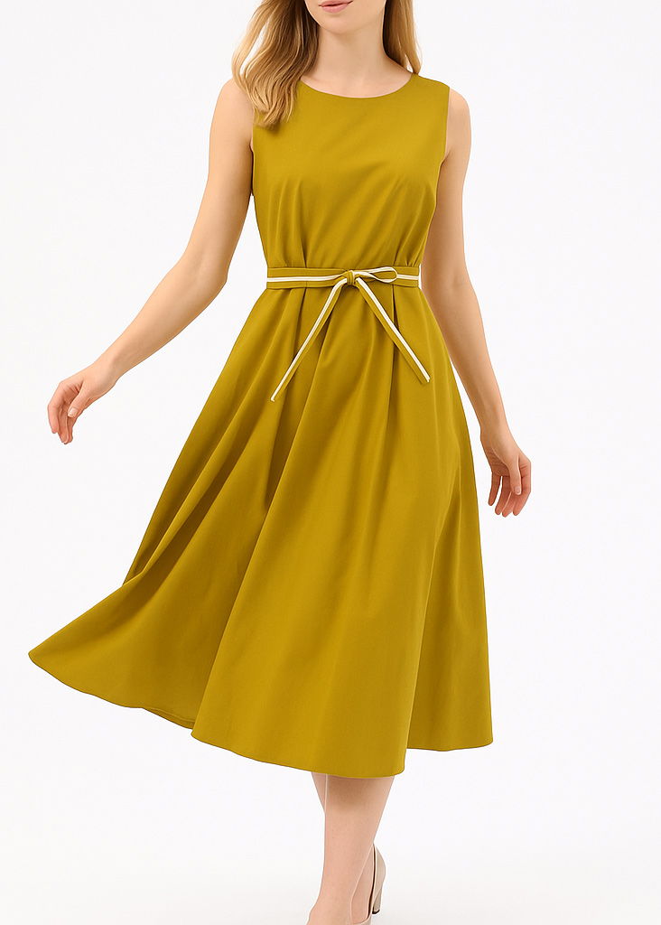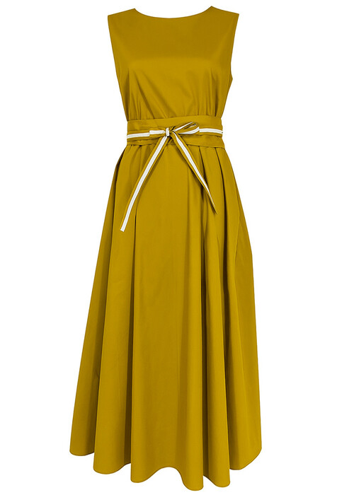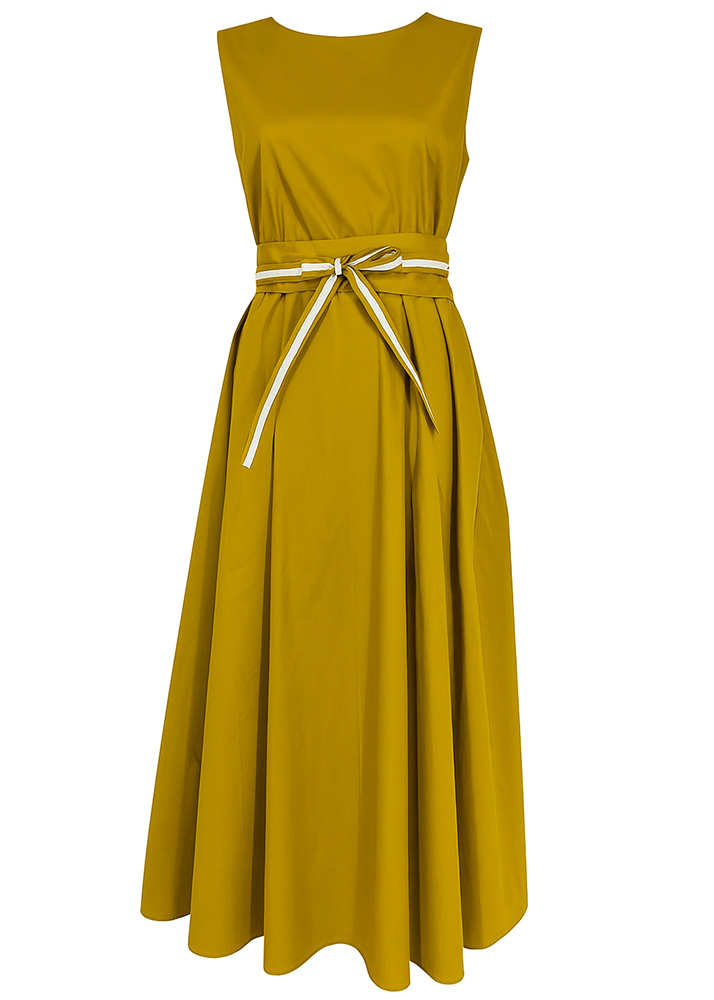 Φόρεμα Midi Βαμβακερό Άλφα Γραμμή Με Ζωνάκι Λαδί