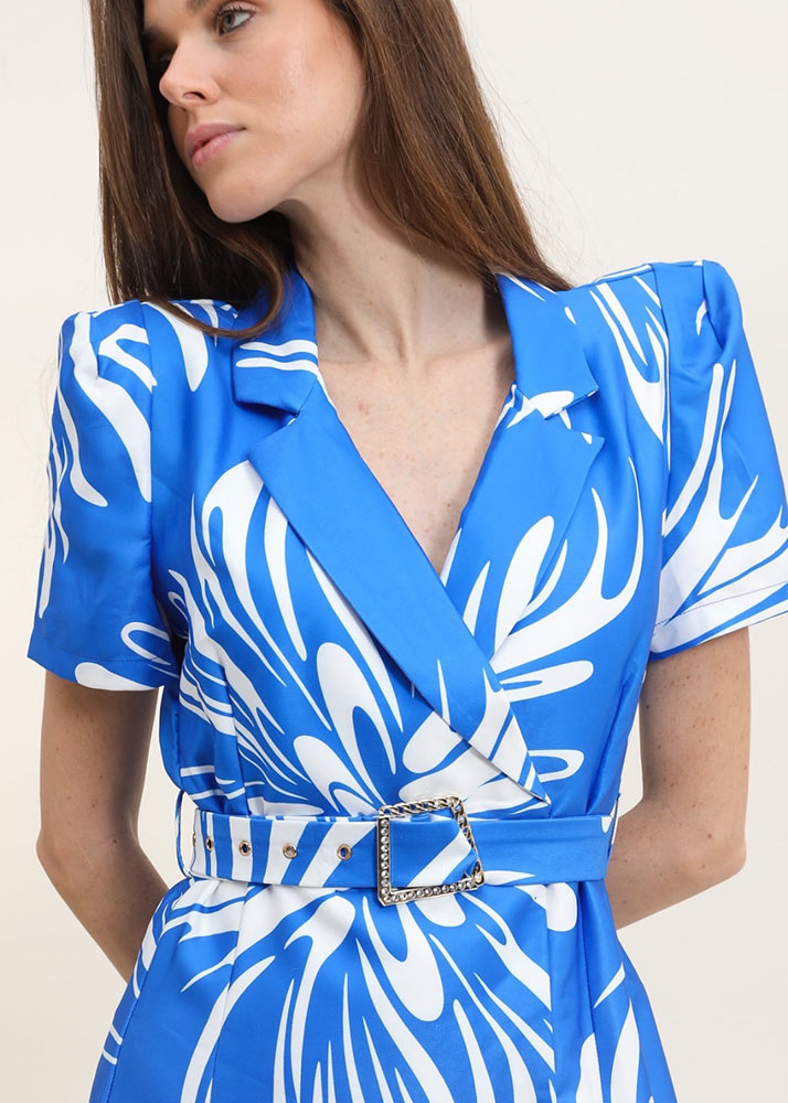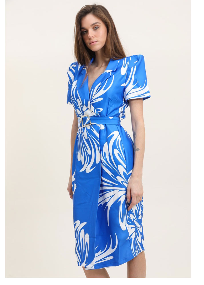• Φόρεμα  Κρουαζέ Με Ζώνη Blue Royal
