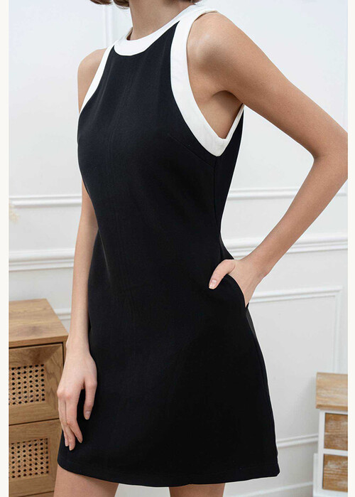 Φόρεμα Μίνι Κρεπ Άσπρο/Μάυρο
