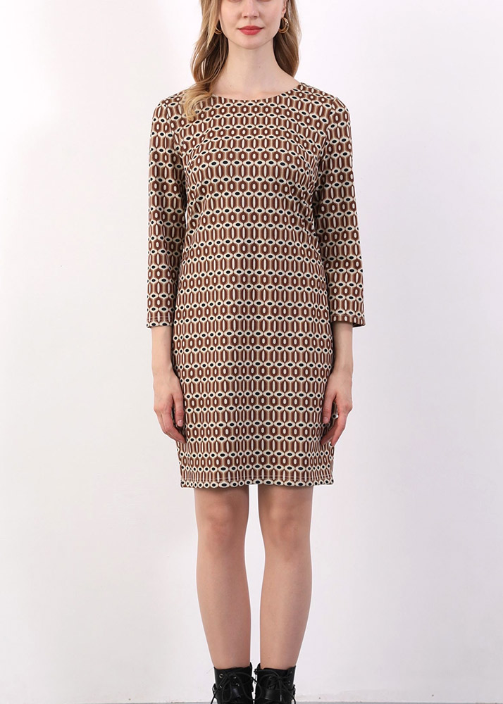 Φόρεμα Σε Άλφα Γραμμή Γεωμετρικά ΚαφέΕμπριμέ