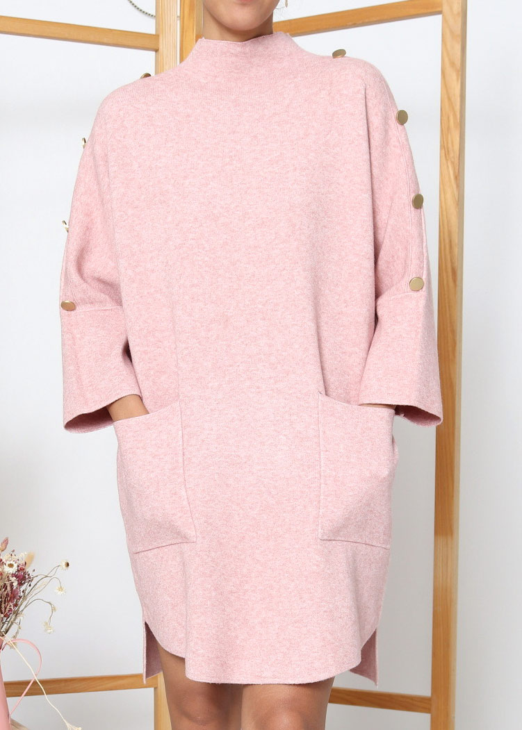 • Φόρεμα Σε Γραμμή Σάκος Με Κουμπιά Ροζ