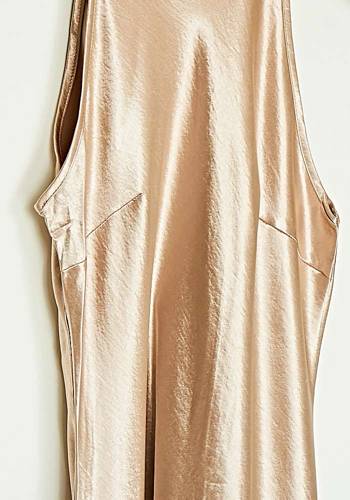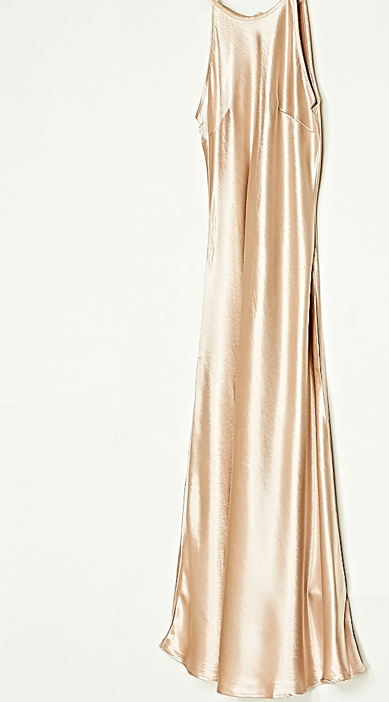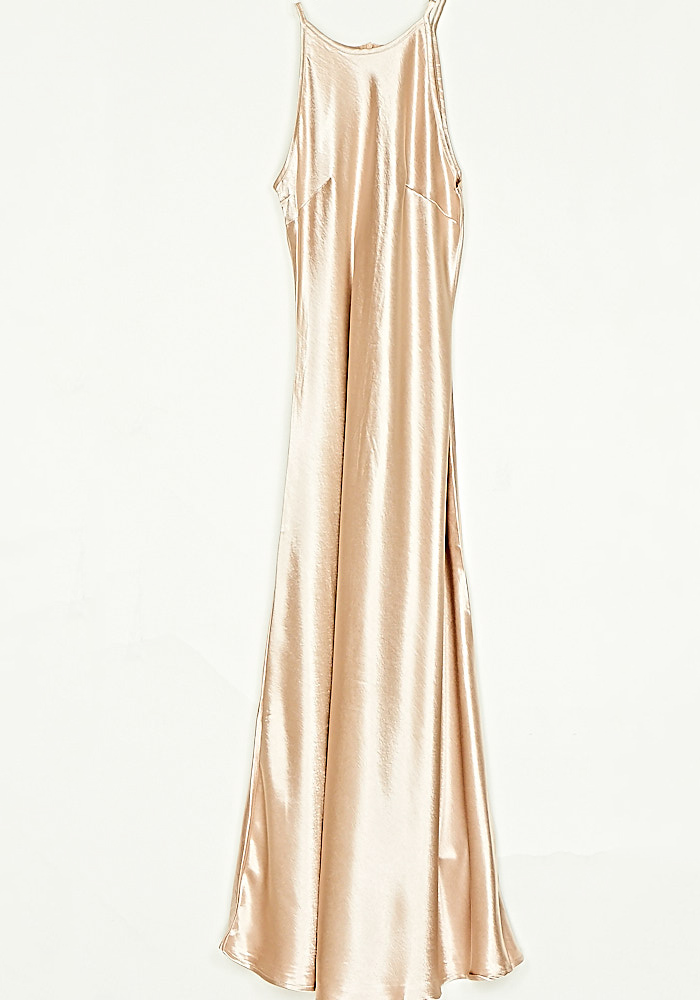 • Φόρεμα Slip Maxi Crepe Satin Εβαζέ Πουδρέ