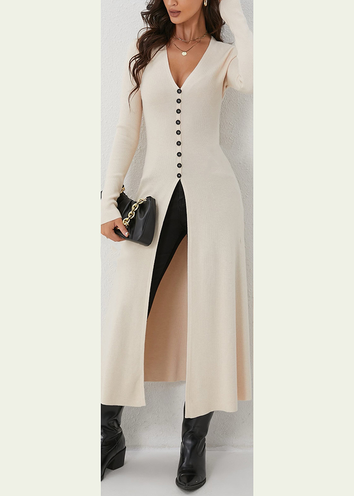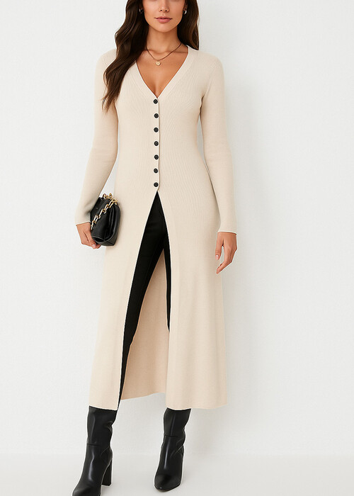 • Ζακέτα/Φόρεμα Πλεκτή Midi Eβαζέ Εκρού