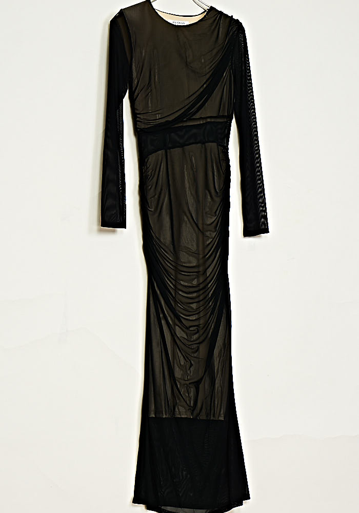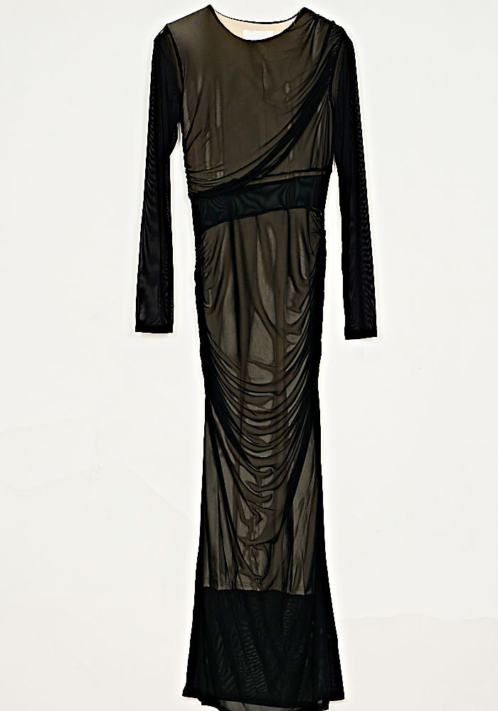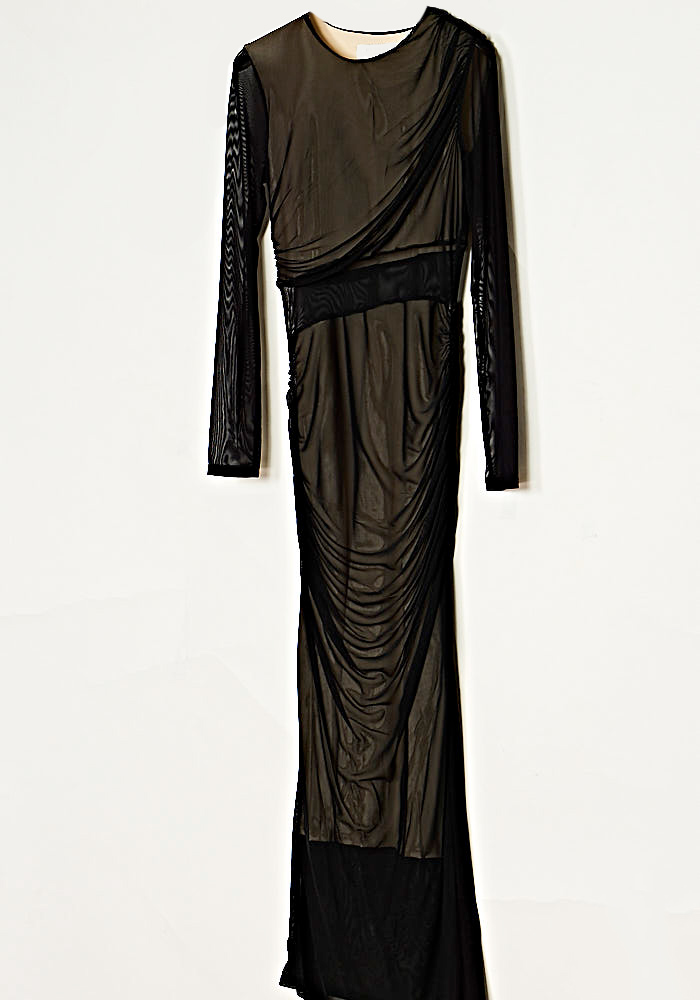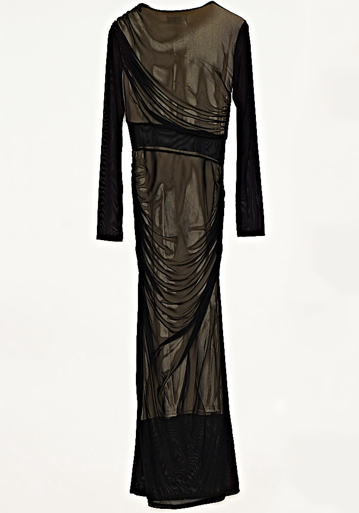 • Φόρεμα Από Ελαστικό Τούλι Με Σούρα  & Ντραπέ Μάυρο