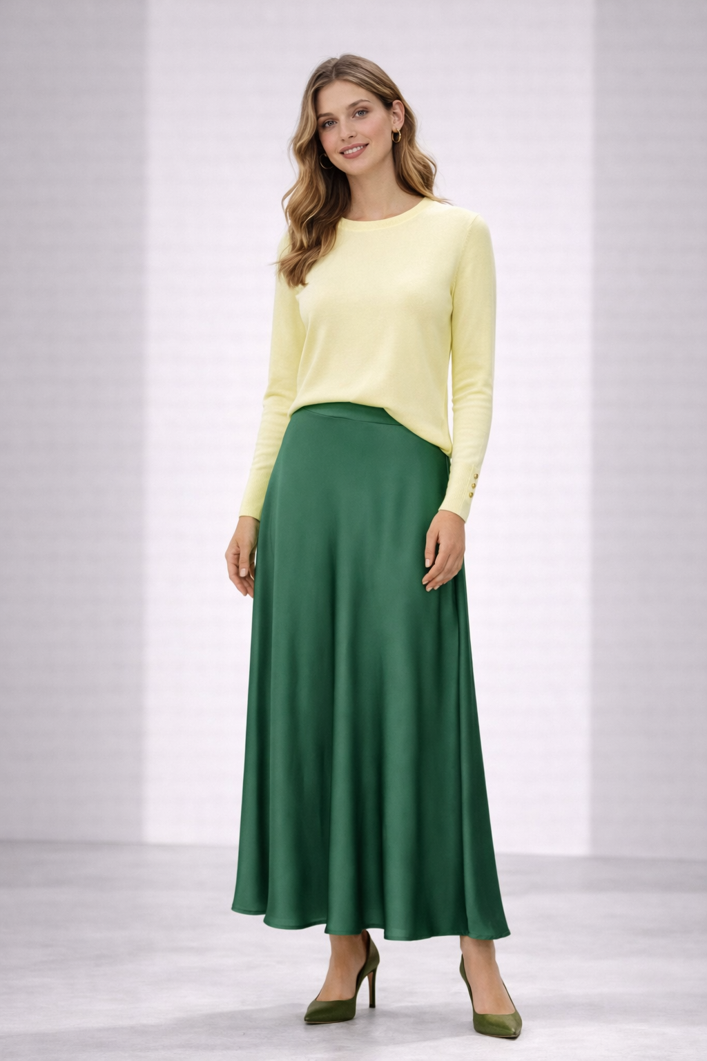 Φούστα Satin Μάξι Κλος Πράσινη