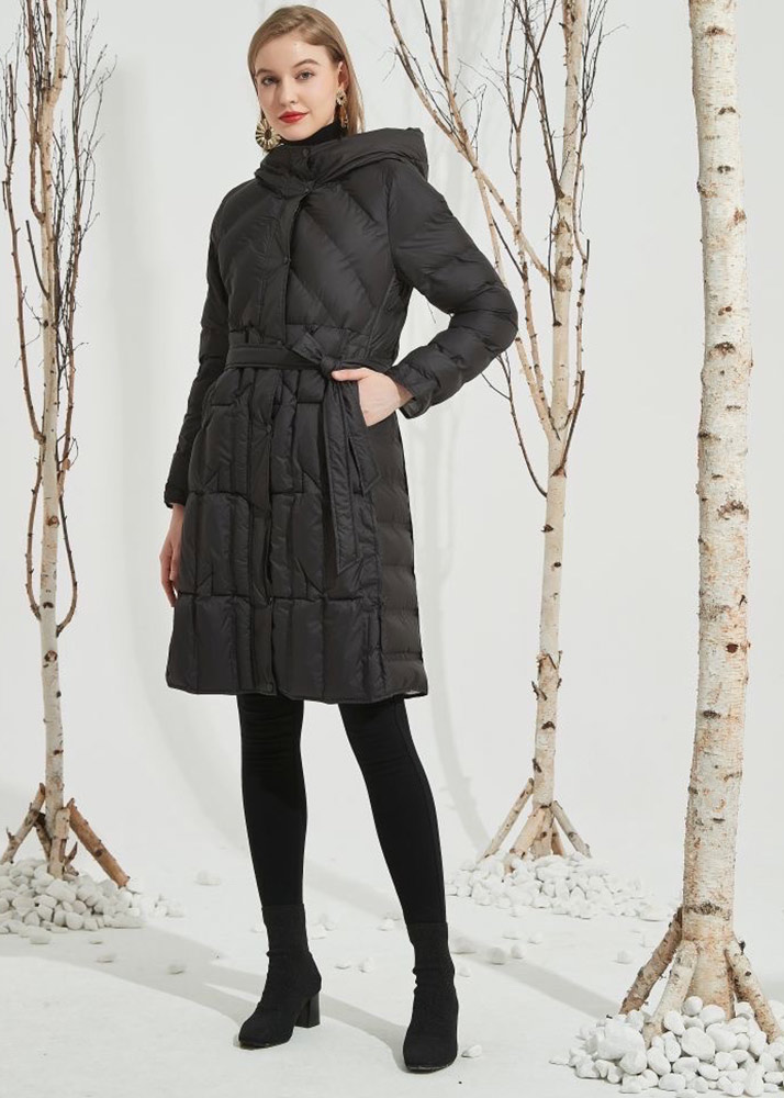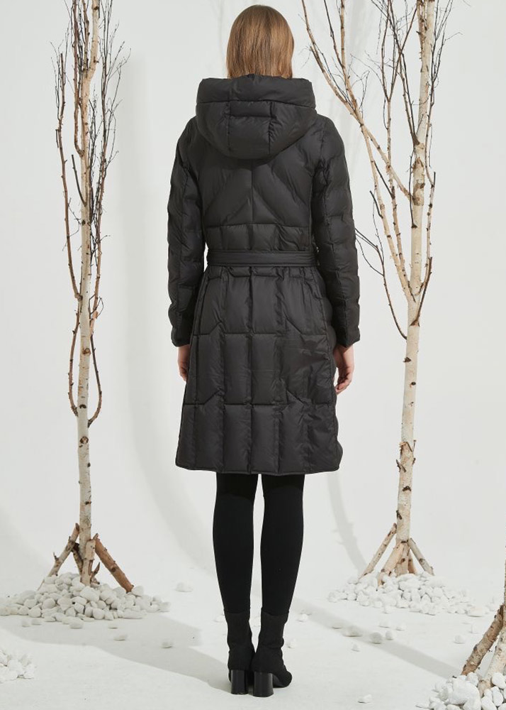 • Μπουφάν Kαπιτονέ Με Κουκούλα &  Ζώνη Mάυρο