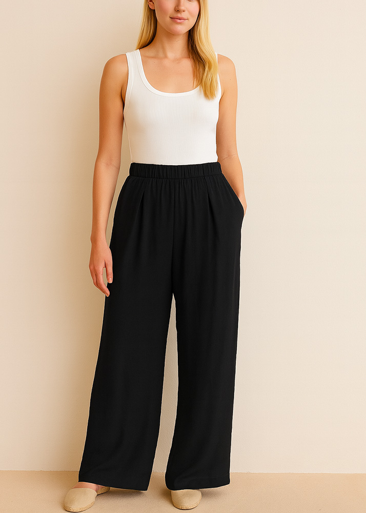 Παντελόνα Σε Φαρδιά Γραμμή Mάυρη