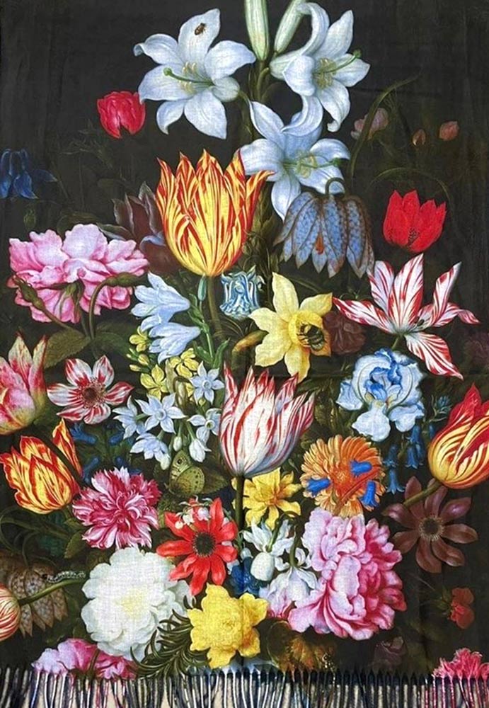 Pashmina Mix Μαλί Κρόσια Διπλής Όψης Flower/Eμπριμέ