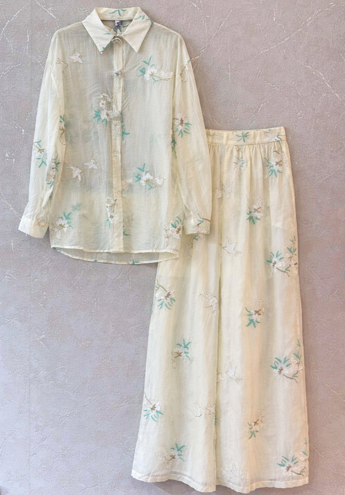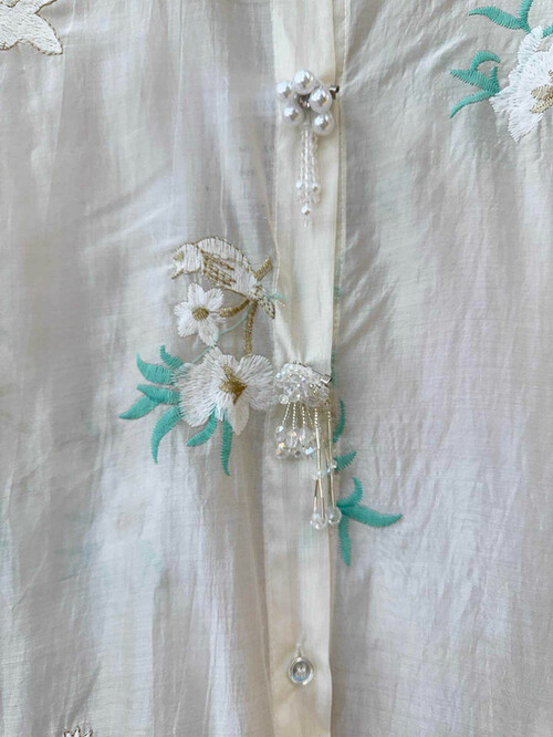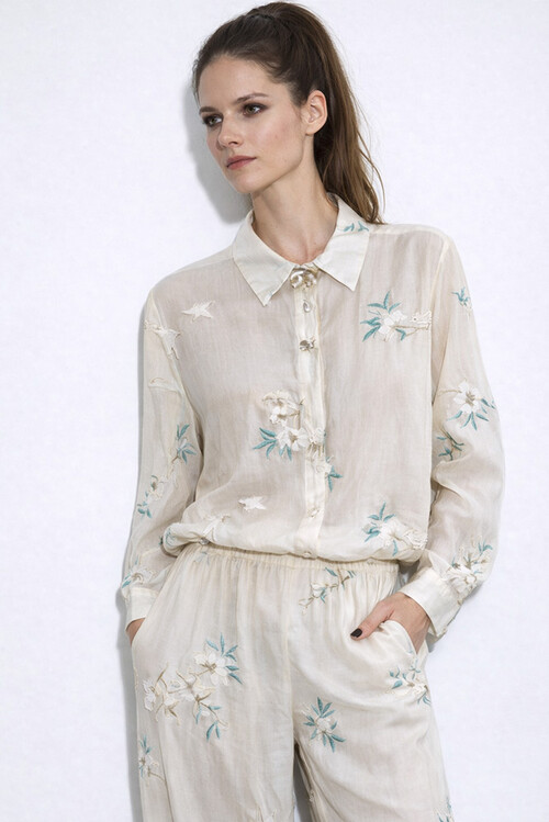 • Πουκαμίσα Οργάντζα Ολομέταξη Με Διακριτικό Κέντημα Της Άμμου