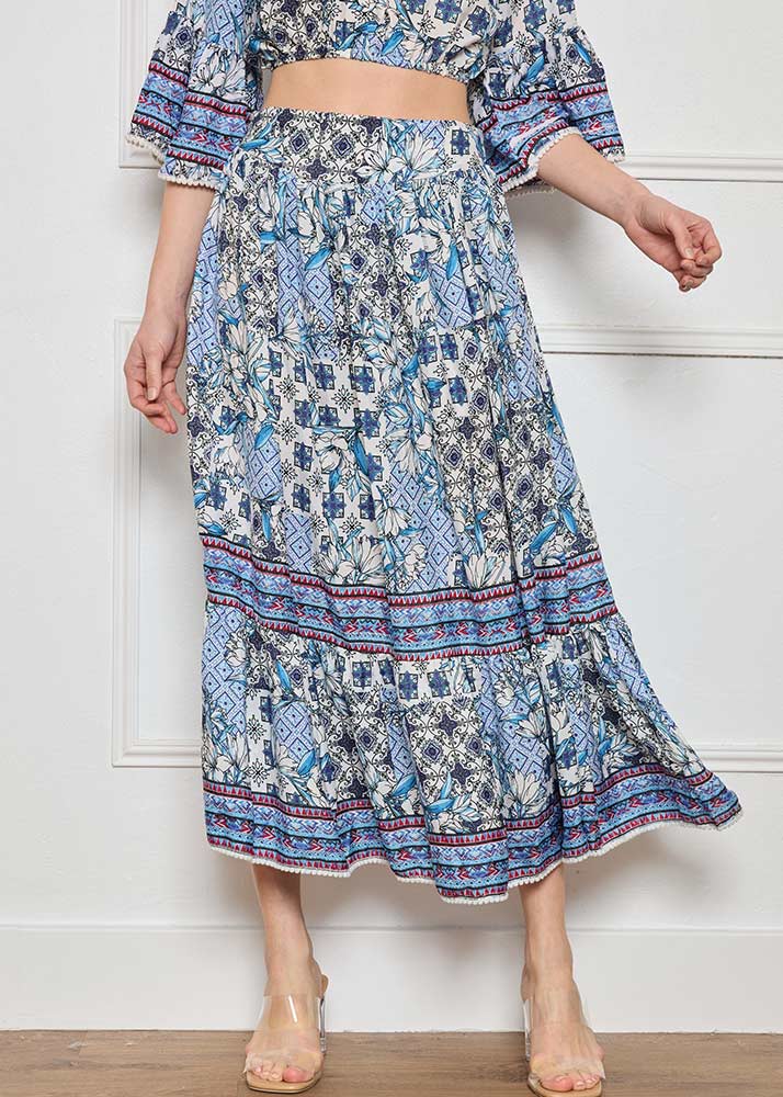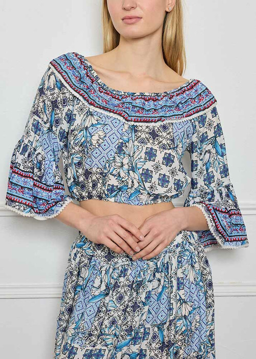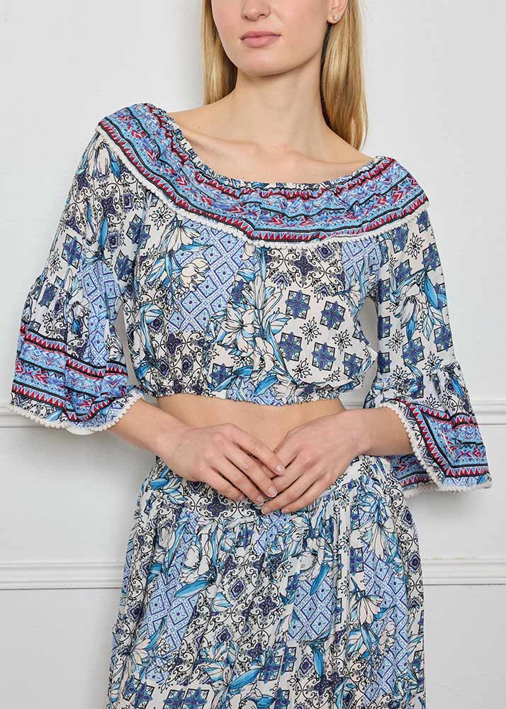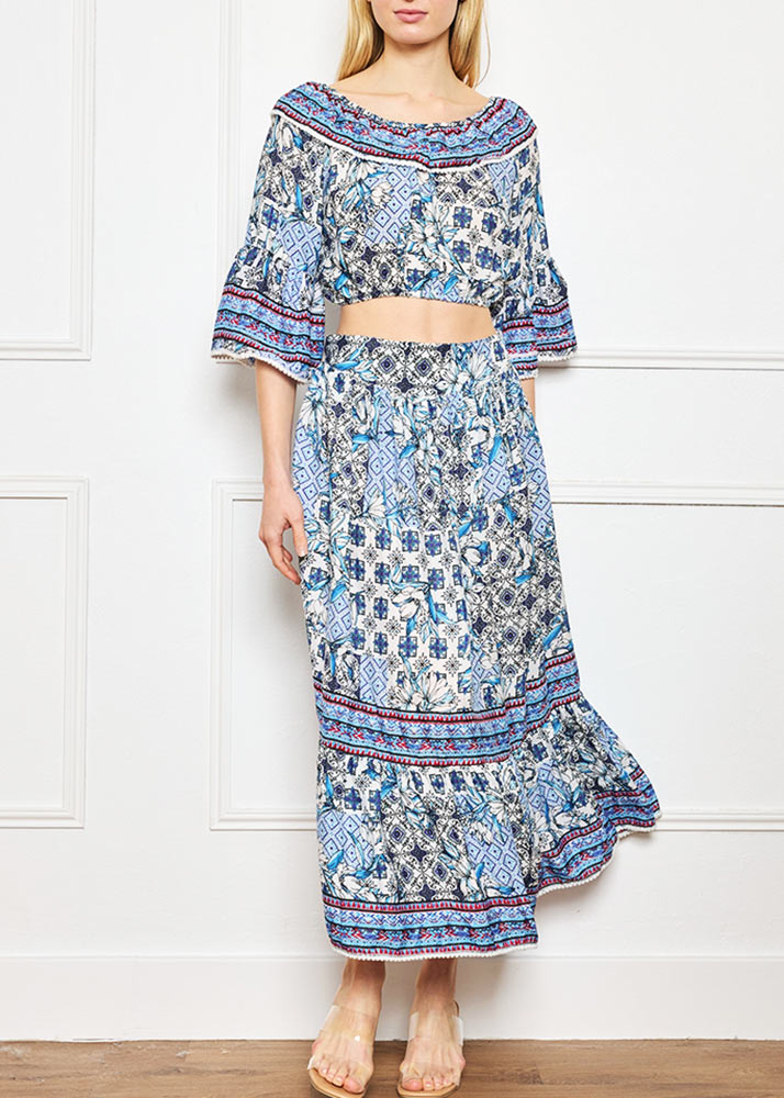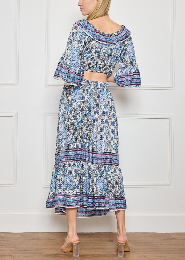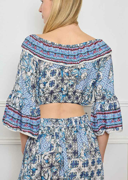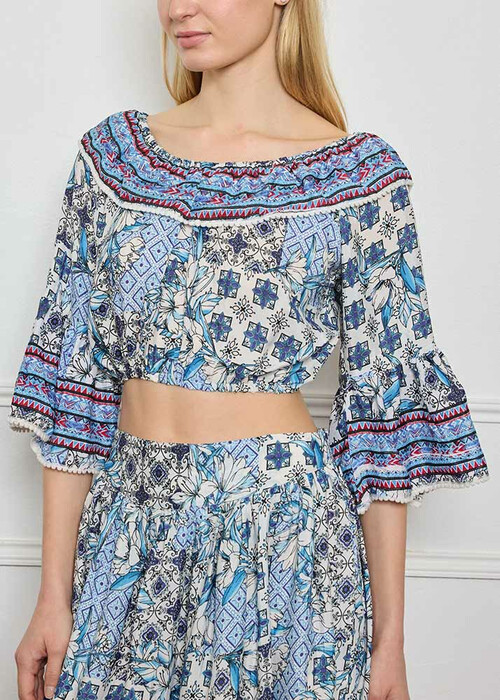 Set Φούστα/Τοπ Κοντό Έξωμο Βολάν Εμπριμέ